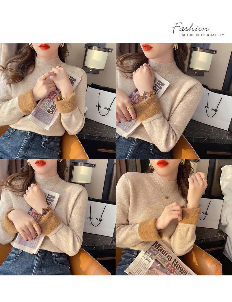 2025 Nuevo Suéter de Fondo de Terciopelo para Mujer Otoño e Invierno Súper Grueso de Una Pieza Terciopelo Cálido y Elegante Top Jersey de Punto