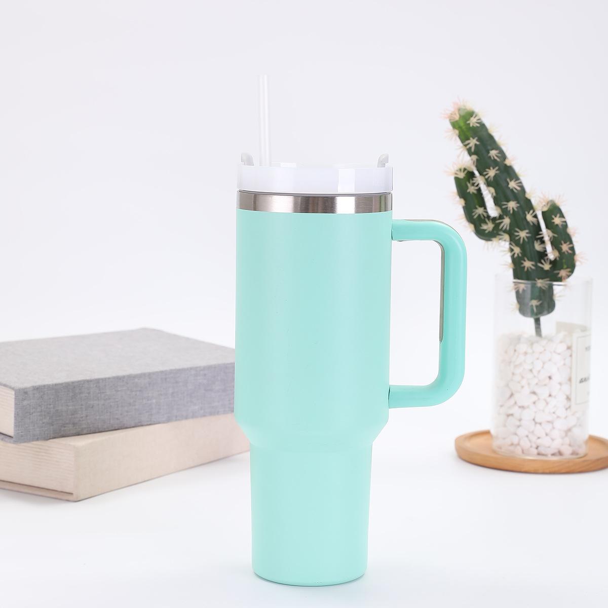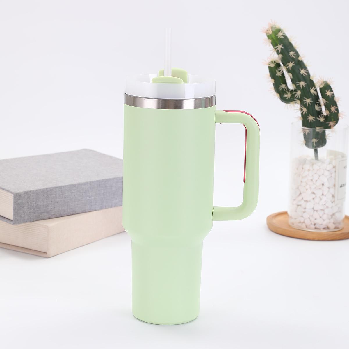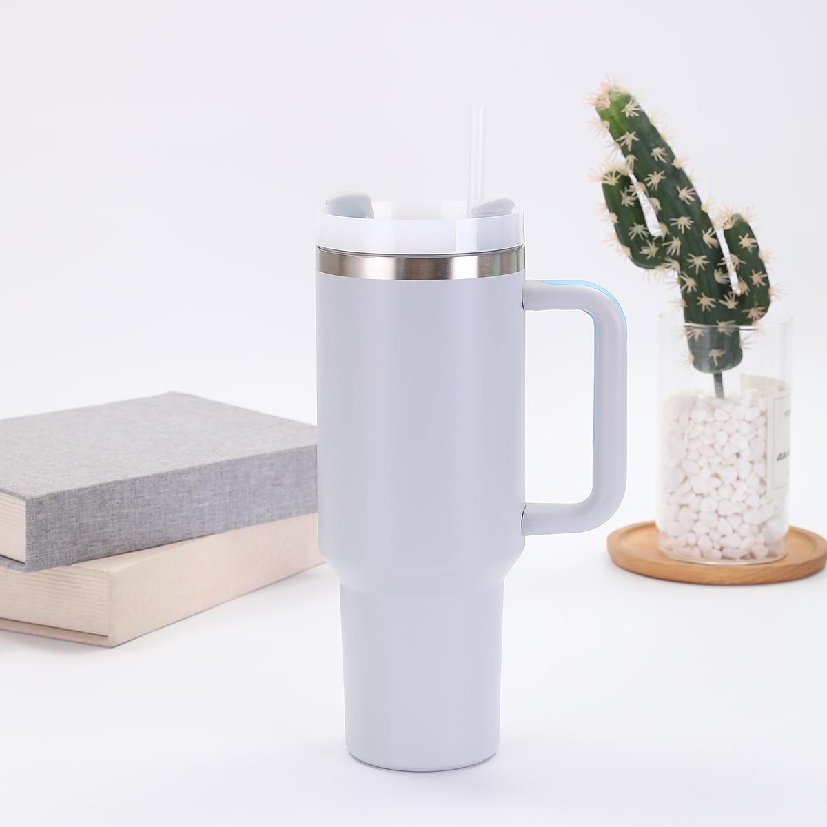 Vaso para coche de segunda generación de 40 oz con asa transfronterizo, acero inoxidable 304, doble capa, termo con popote, vaso para casa para bebidas frías y hielo