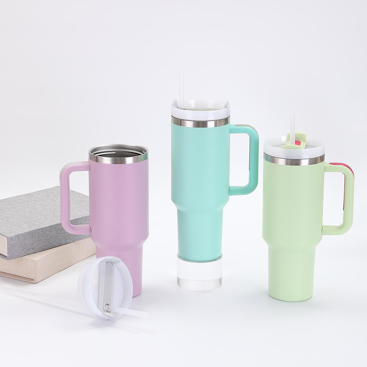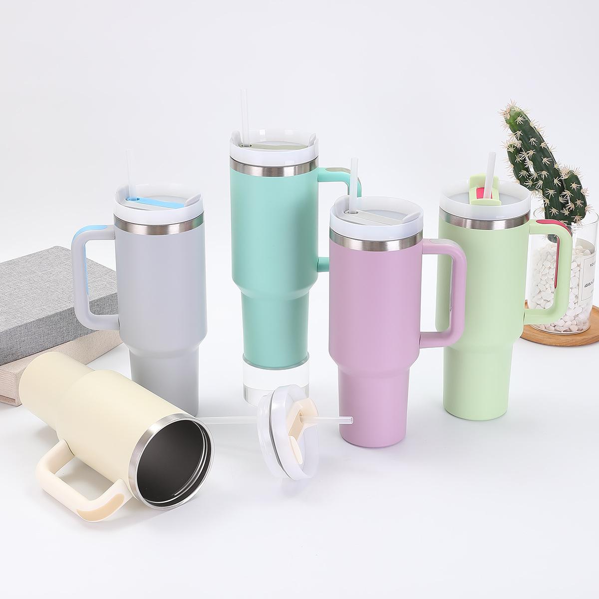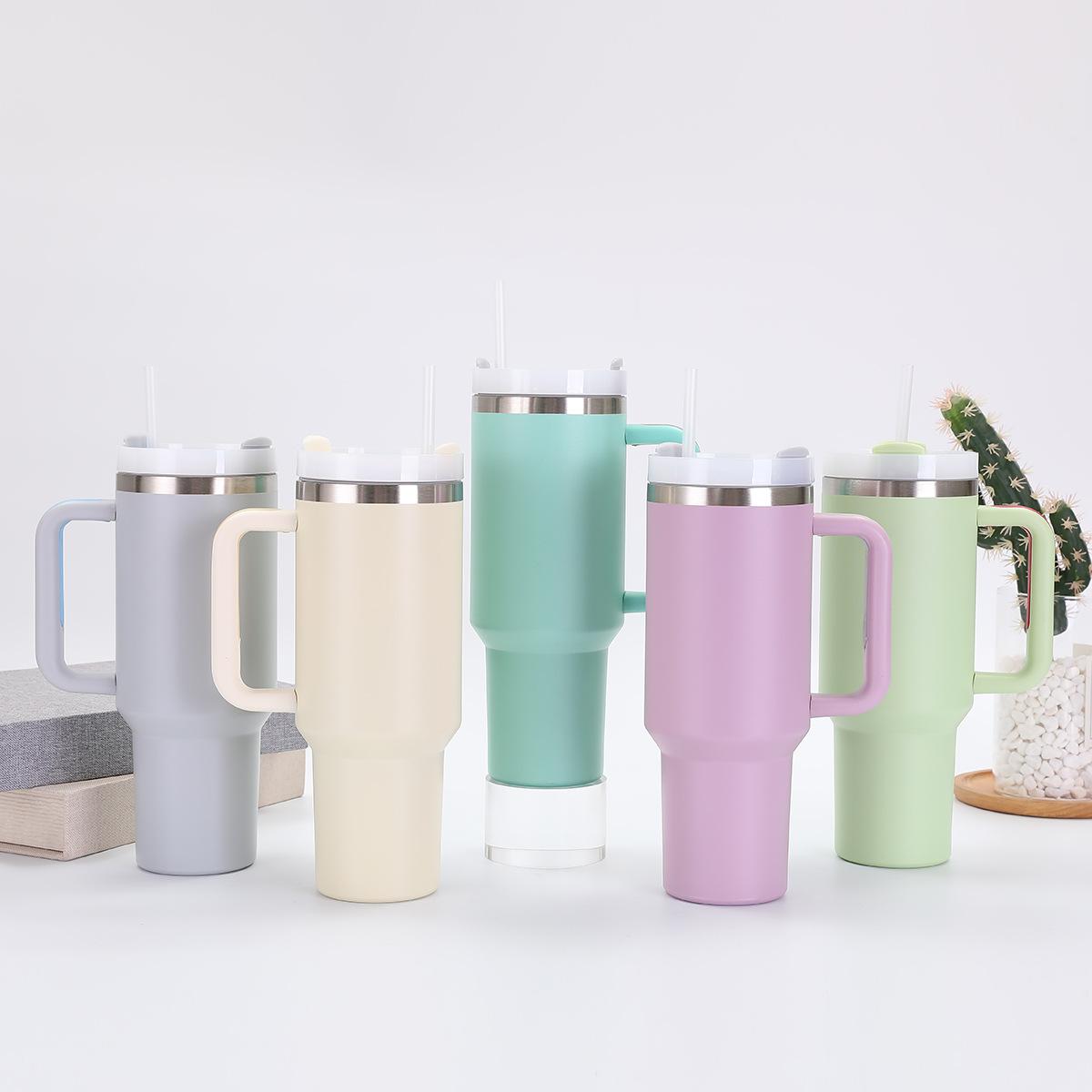 Vaso para coche de segunda generación de 40 oz con asa transfronterizo, acero inoxidable 304, doble capa, termo con popote, vaso para casa para bebidas frías y hielo