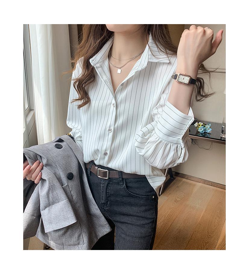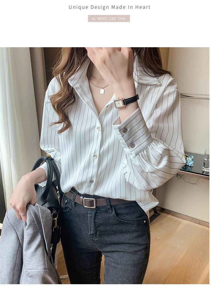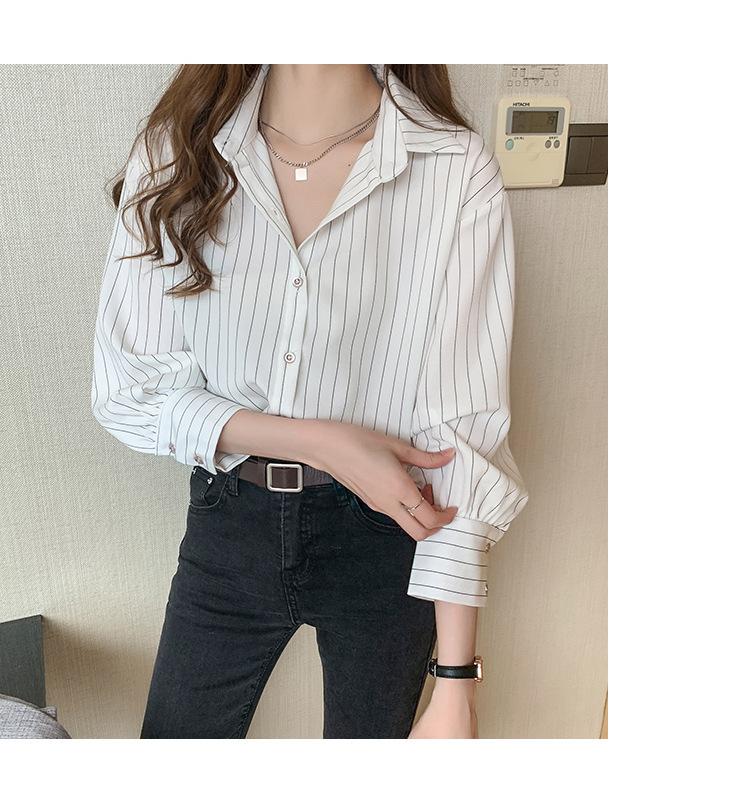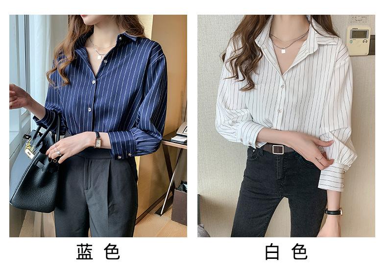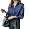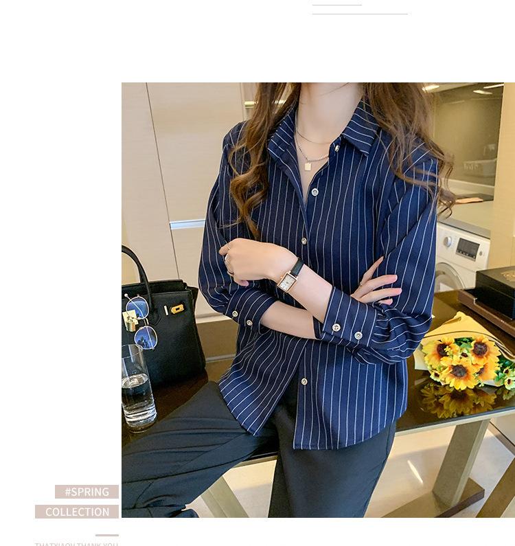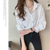 2025 Primavera Nuevo Top con Solapa Estilo Retro Hong Kong Camisa Rayada Blanca para Mujer con Sentido del Diseño, Adecuada para Usar en Capas
