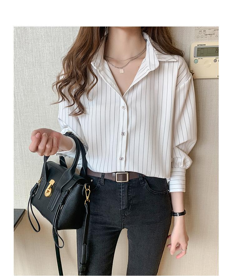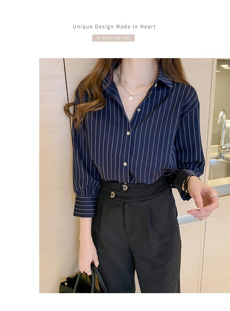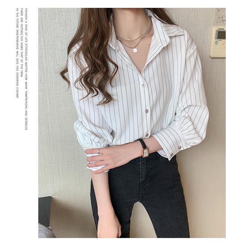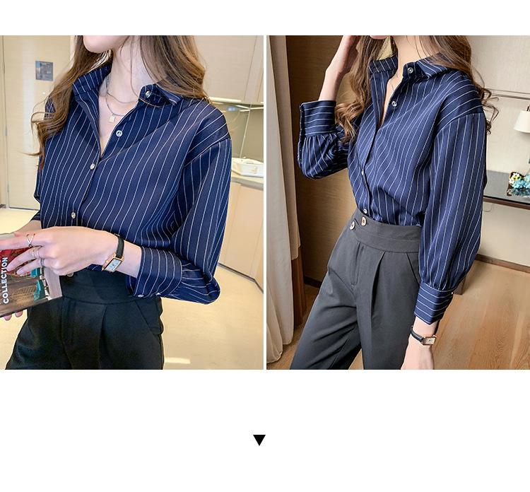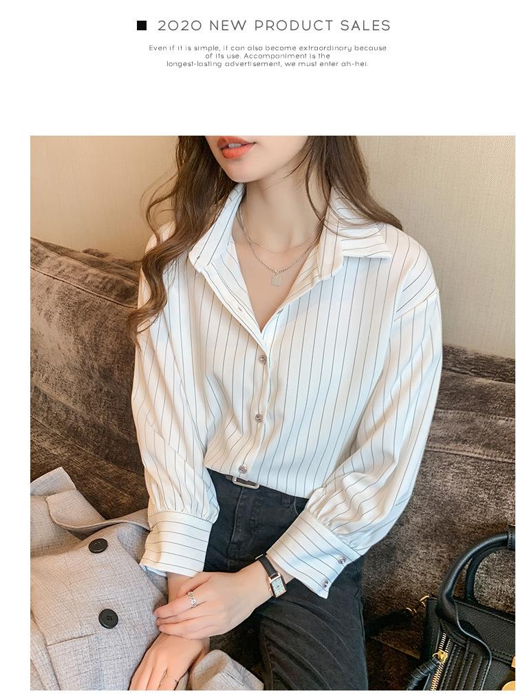 2025 Primavera Nuevo Top con Solapa Estilo Retro Hong Kong Camisa Rayada Blanca para Mujer con Sentido del Diseño, Adecuada para Usar en Capas