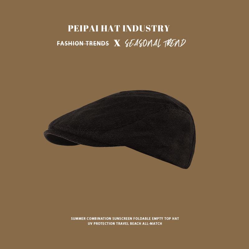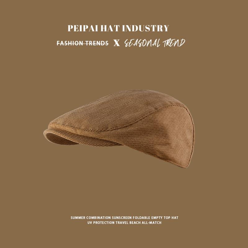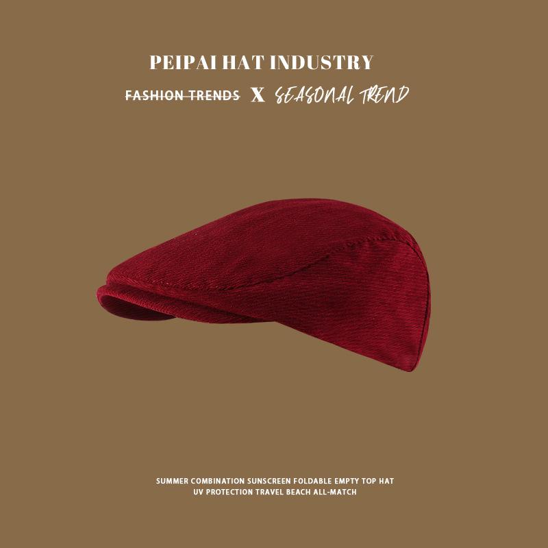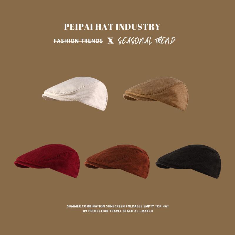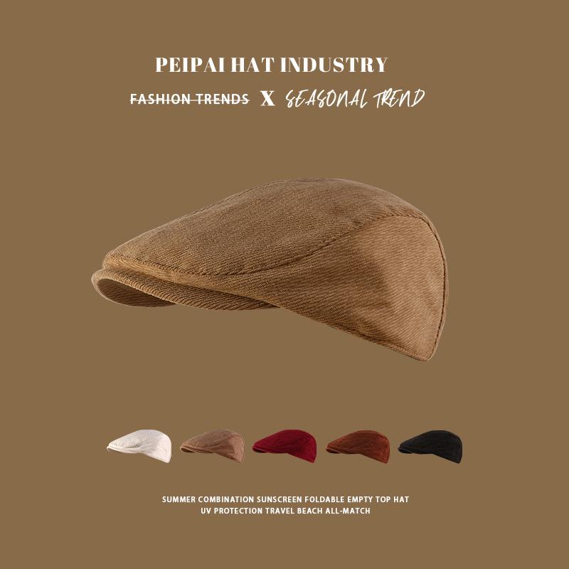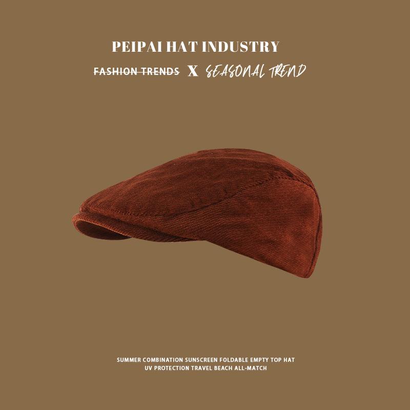 Gorra Retro de Pana para Mujer Otoño e Invierno Combinable Color Sólido Calle Británica Boina Cálida a Prueba de Frío Sombrero Octagonal
