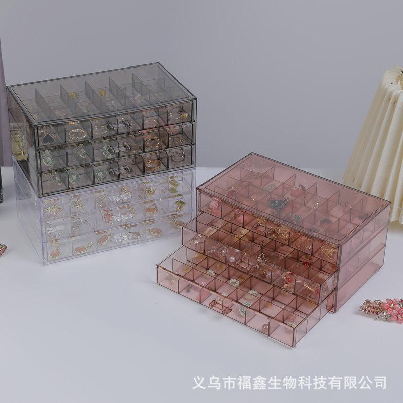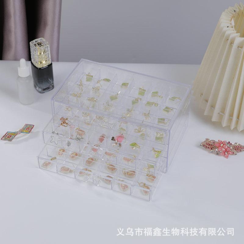 Transparent color 3 drawers 72 grids (boxed) * 3 drawers jewelry box, Transparent gray 3-draw 72-grid (boxed)*...