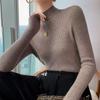 Suéter Otoño e Invierno Cuello Medio Alto Suéter Tejido Top Ajustado Negro Jersey Camiseta Básica Costuras Suéter Personalizado