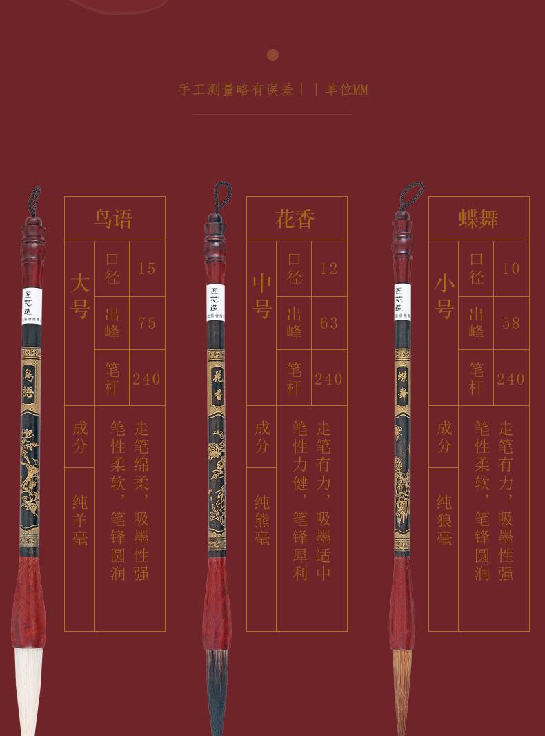 Tinta con núcleo artesanal, piedra de entintar para adultos, gama media, canto de pájaros, pincel floral, caja de regalo para principiantes, juego de cabello y pelo de lobo para caligrafía