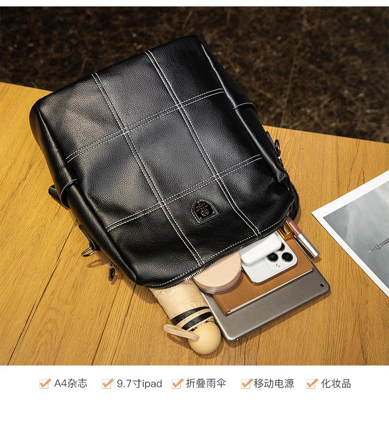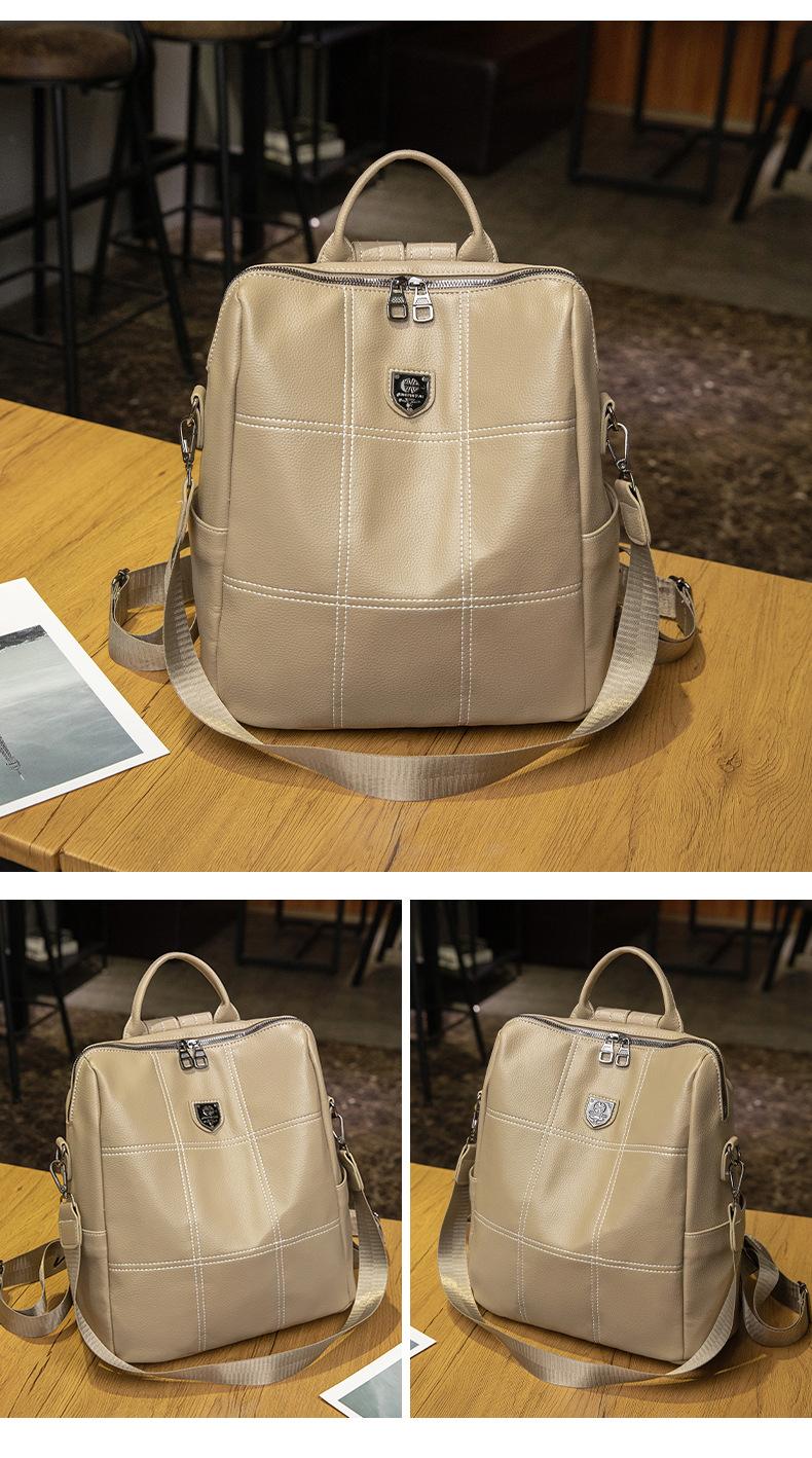 Mochila de cuero suave bordada a la moda para mujer, nueva mochila sencilla, multifunción, de gran capacidad, para viajes de ocio y escolares.