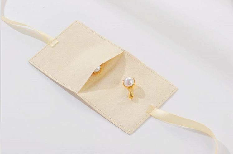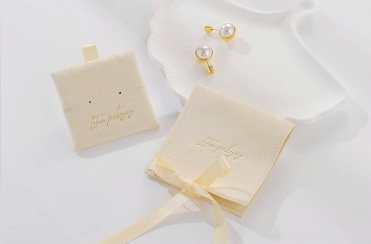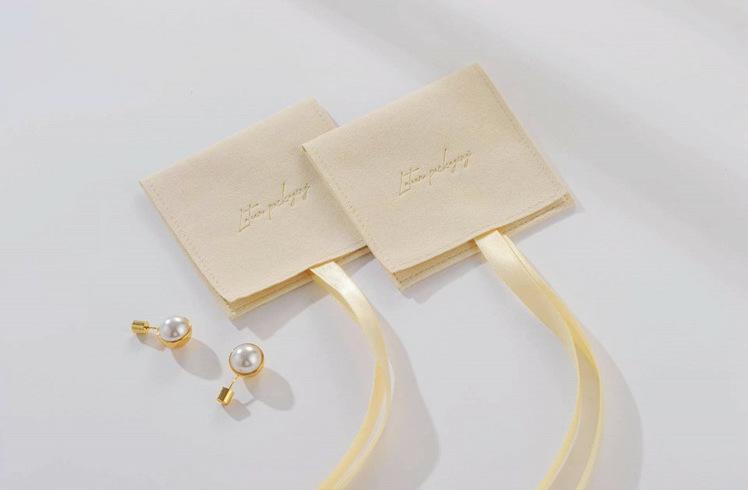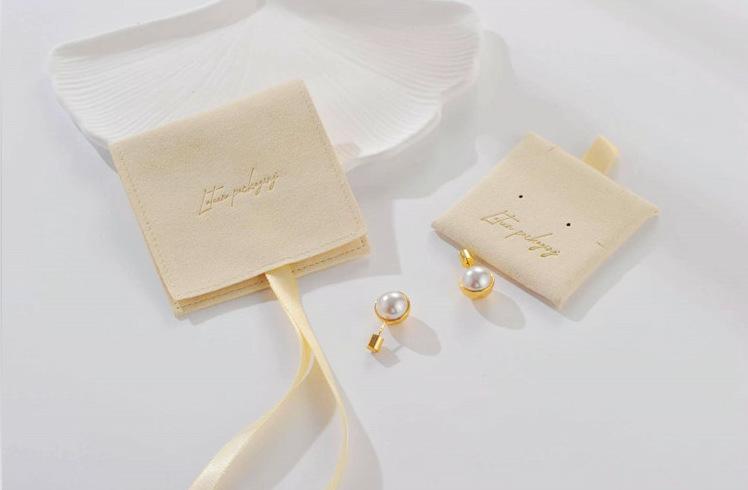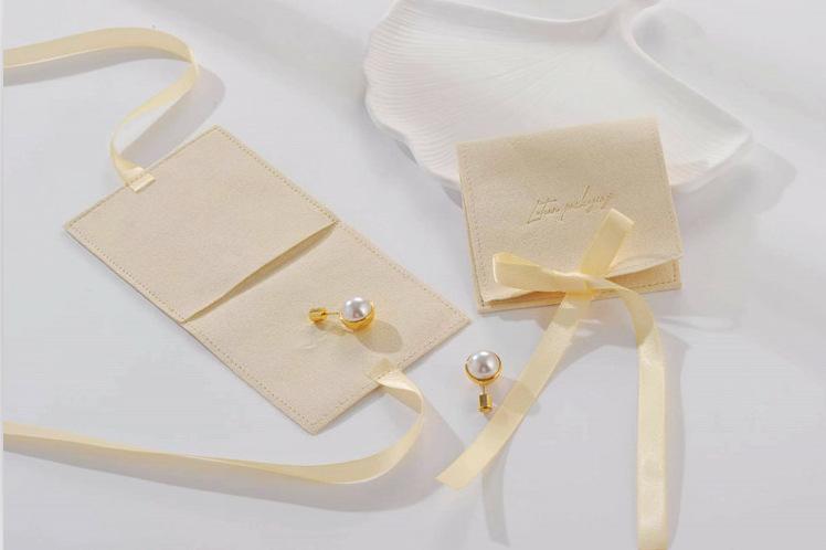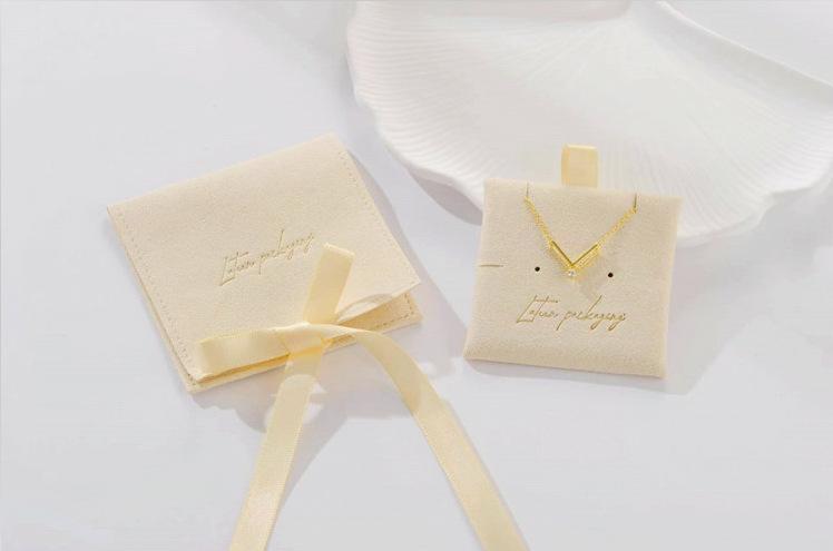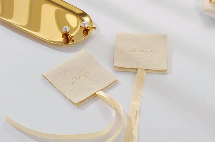 Bolsa de Microfibra de Terciopelo de Doble Cara de Alta Gama Personalizada de Fábrica con Tarjeta Bolsa de Almacenamiento para Embalaje de Joyería con Relieve Portátil
