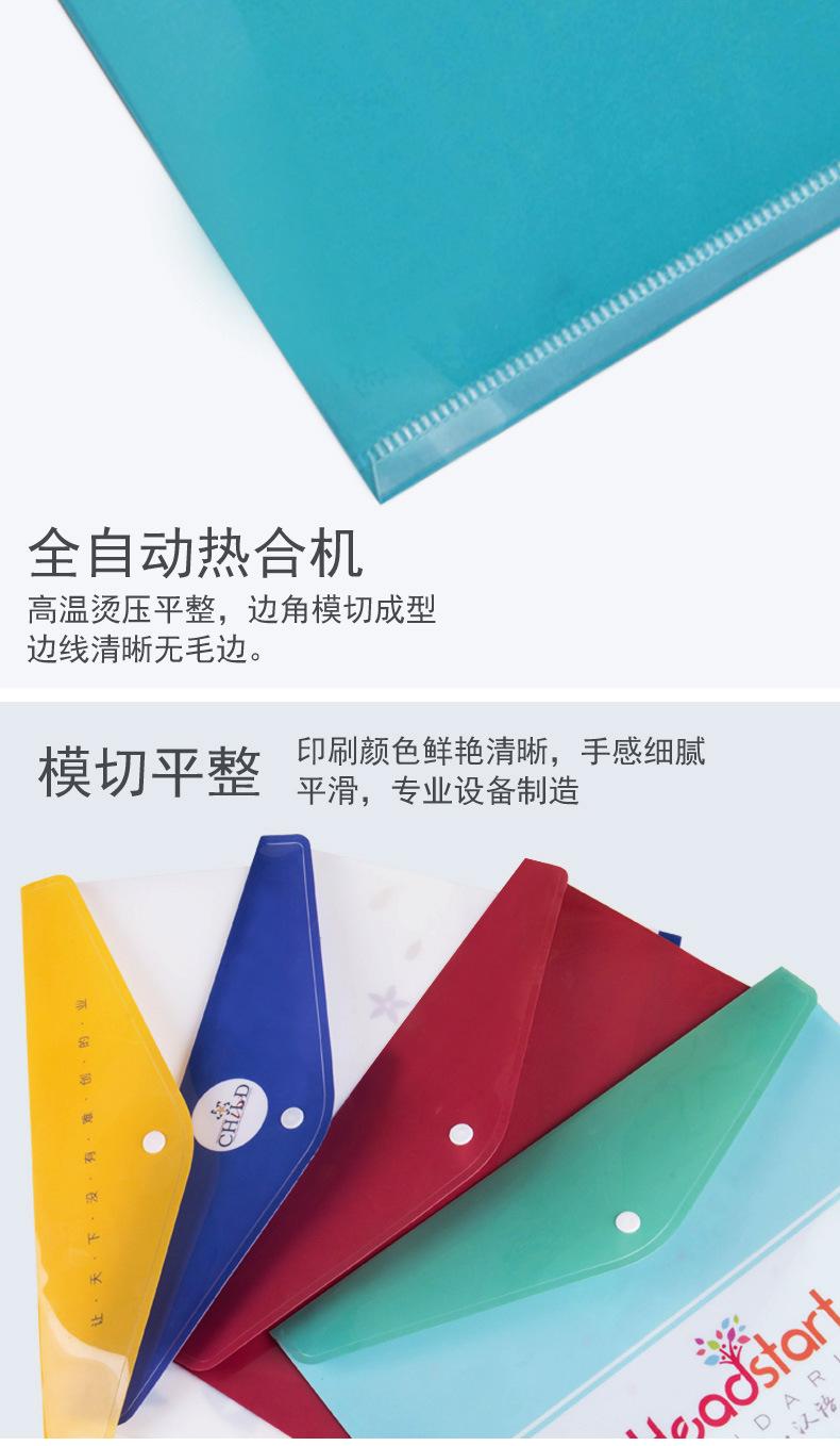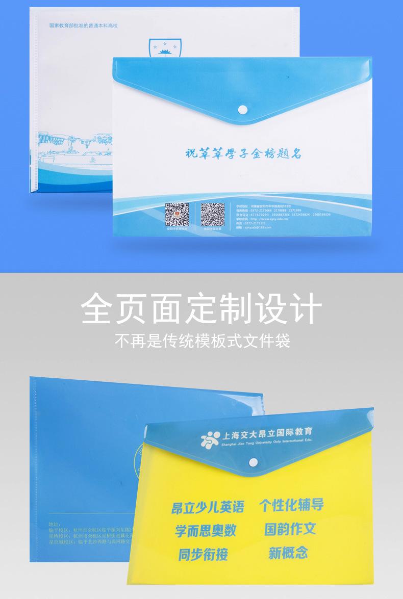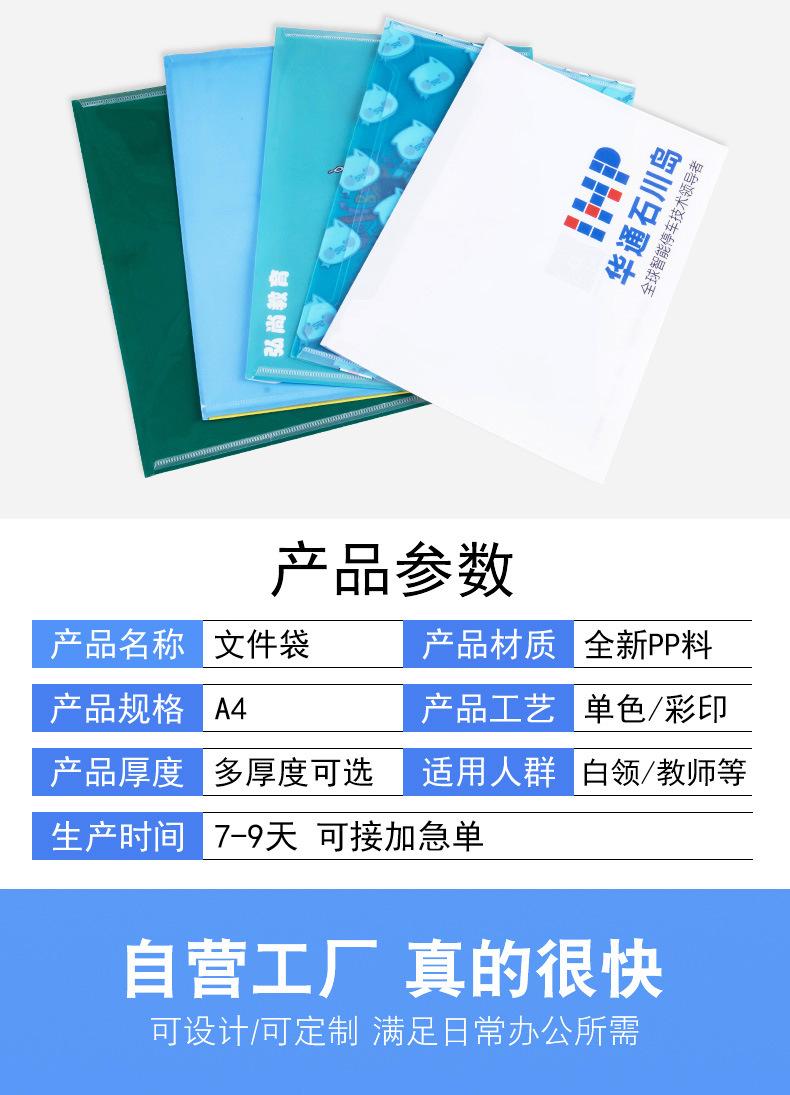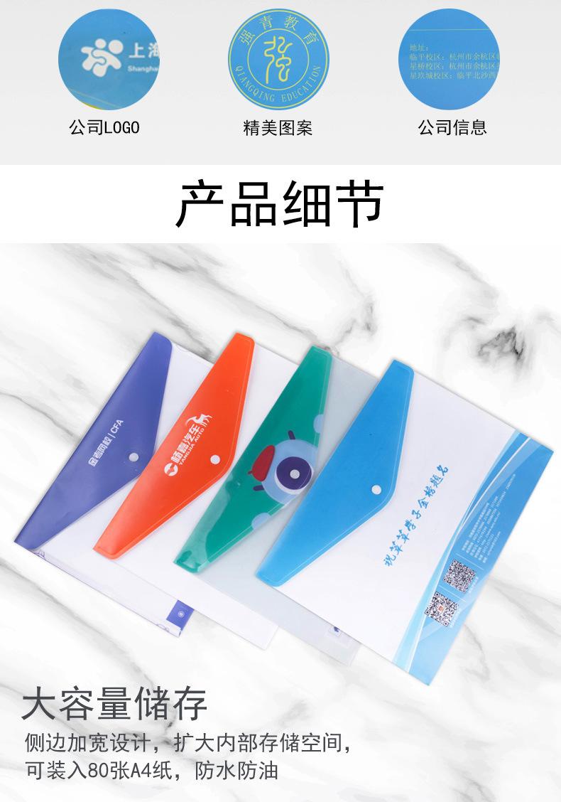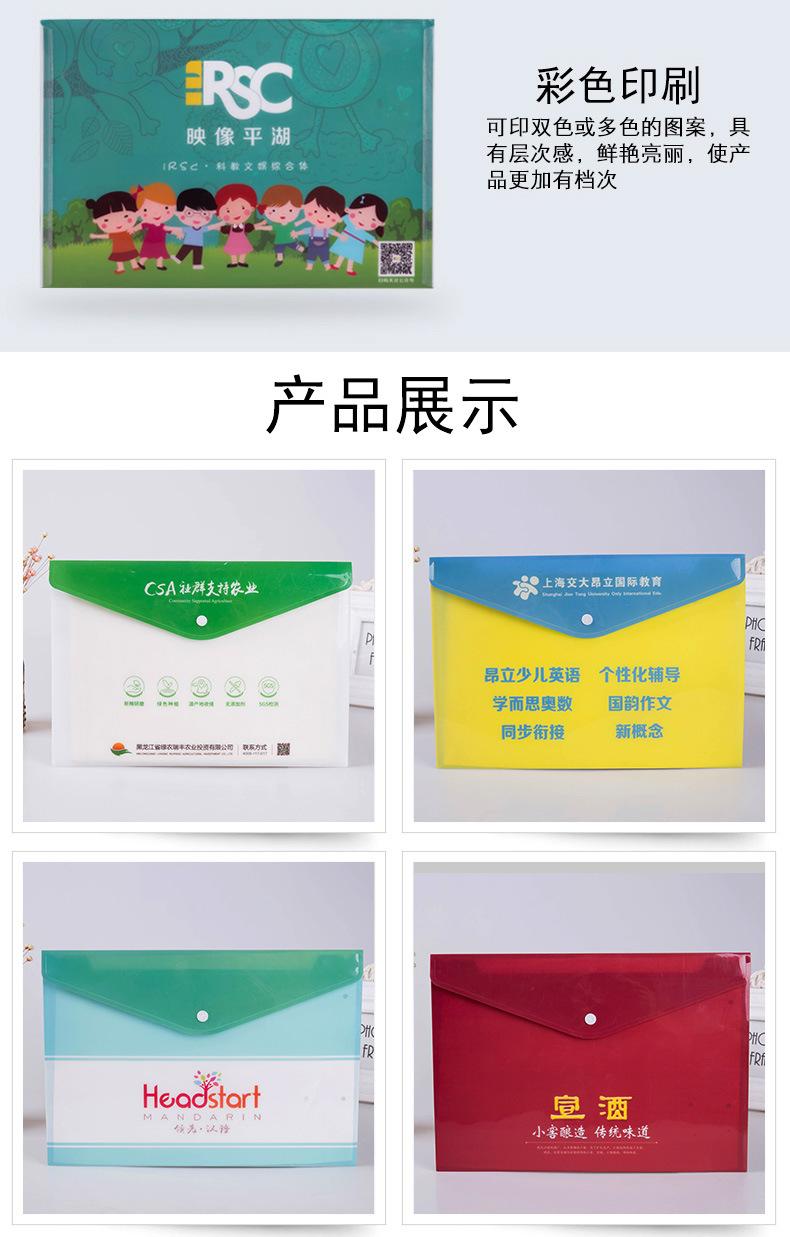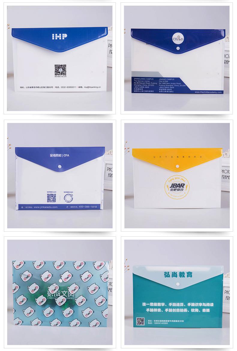 Bolsa de Archivo A4 de Plástico Personalizada con Logotipo Colorida Pp Transparente Impermeable Broche Papel de Prueba Oficina Información Bolsa de Archivo