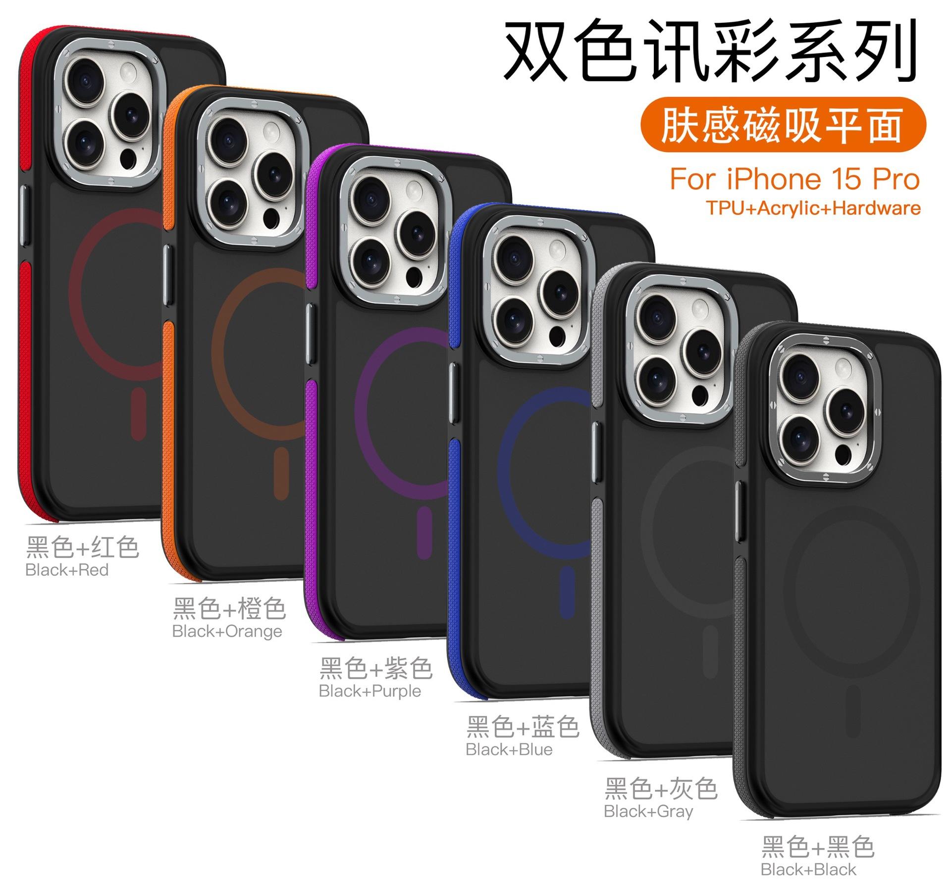 Adecuado para Múltiples Plataformas, Funda para Teléfono iPhone 16 Pro Max, Nueva Funda Magnética Bicolor para Teléfono Apple con Sensación de Piel