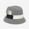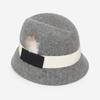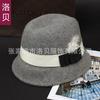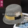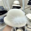Otoño e Invierno decoración de plumas sombrero de lana engrosado sombrero elegante para mujer sombrero de cuenca de ala corta sombrero gris estilo occidental
