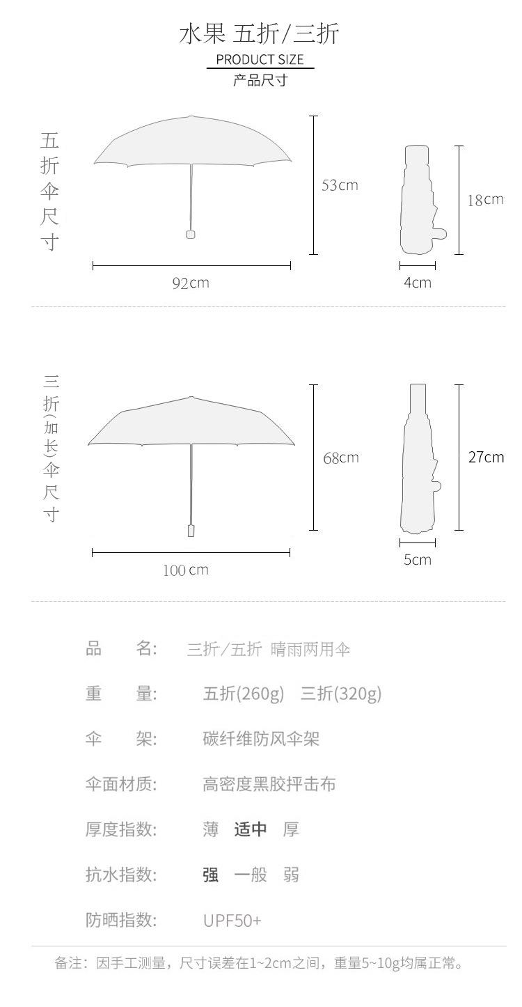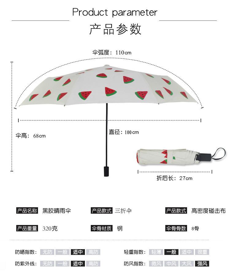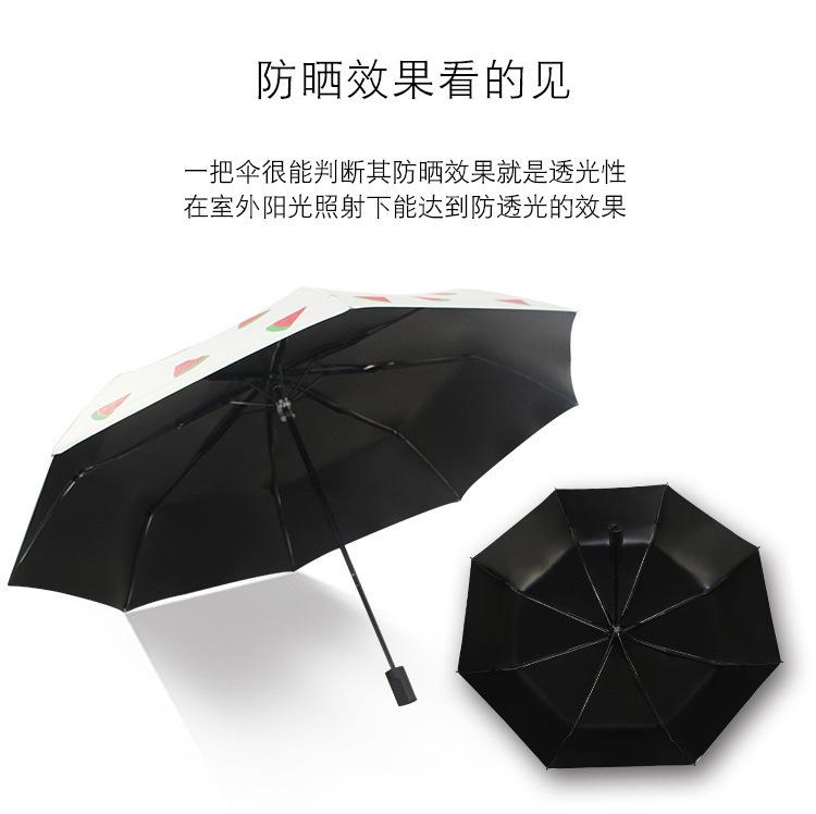 Paraguas parasol de goma negra para frutas de tres pliegues con logo paraguas soleado paraguas unisex
