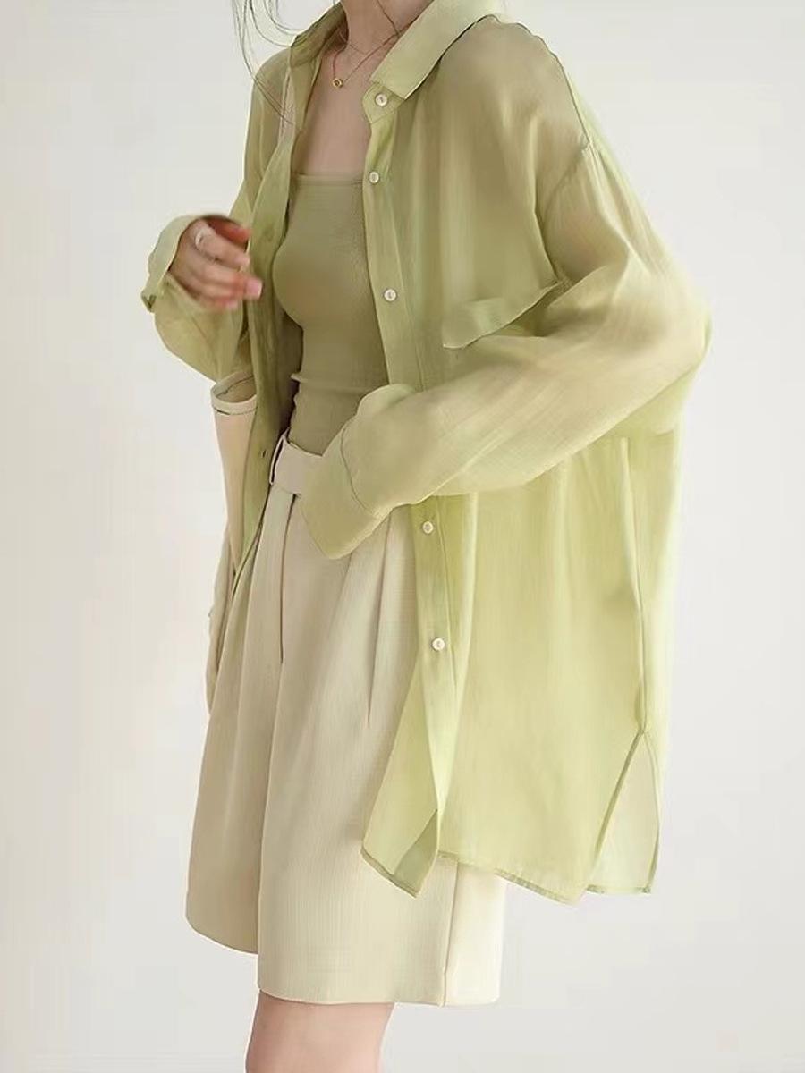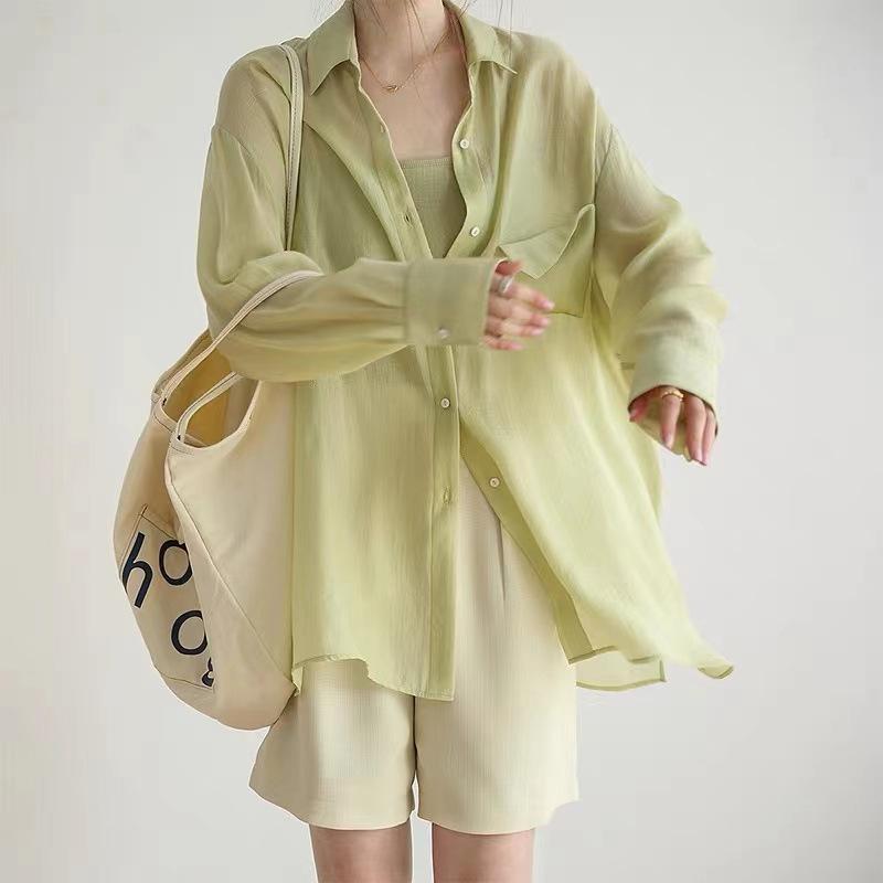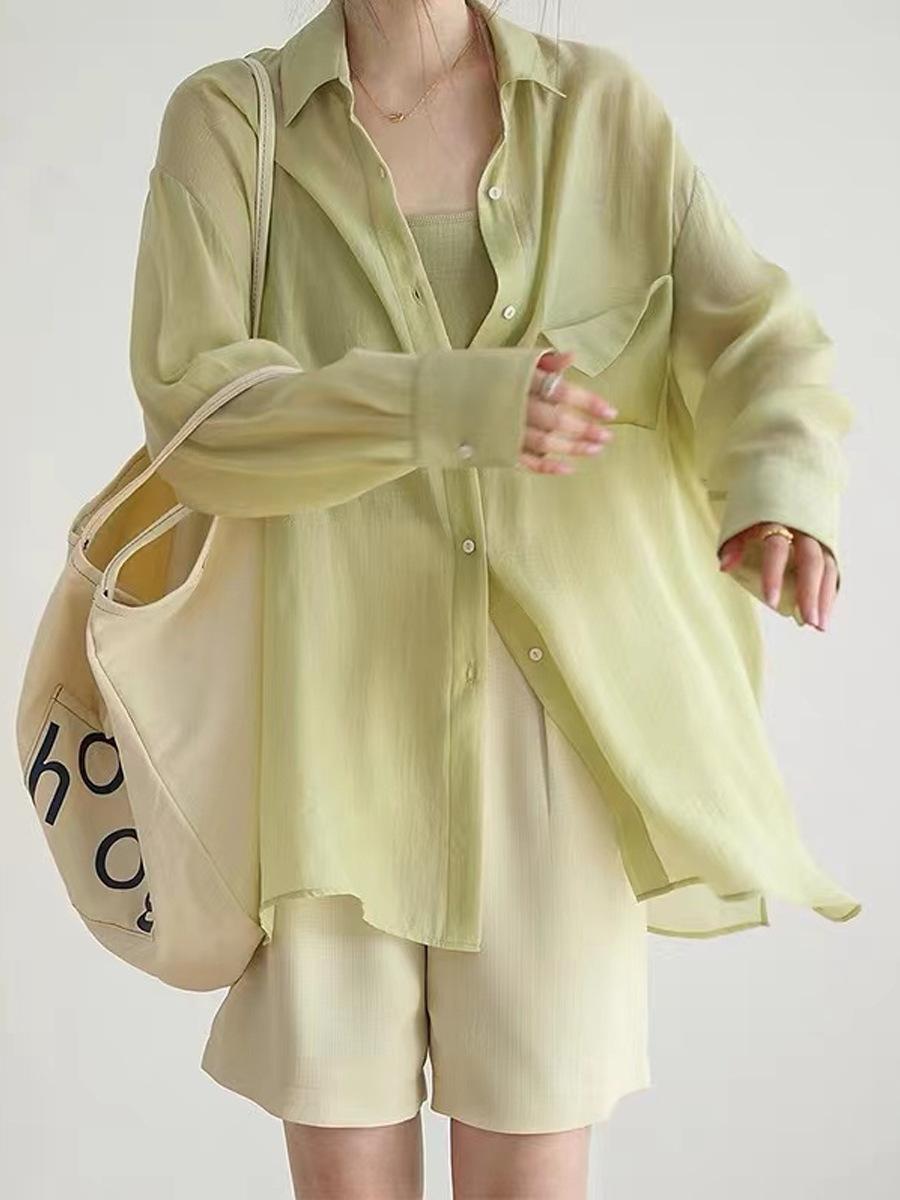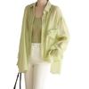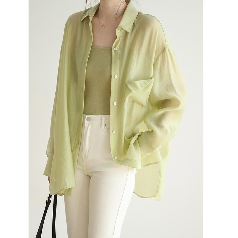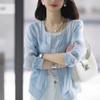 2023 Nueva Camisa de Protección Solar de Tencel para Mujer Verano Delgada Manga Larga Chaqueta Camisa Diseño Moderno Nicho Estilo Perezoso