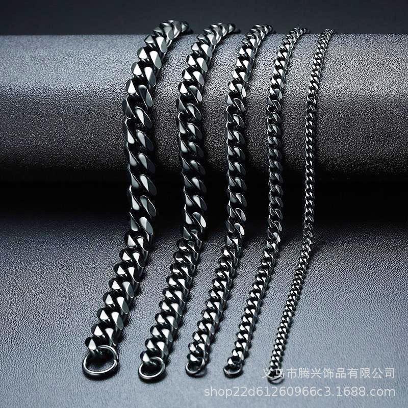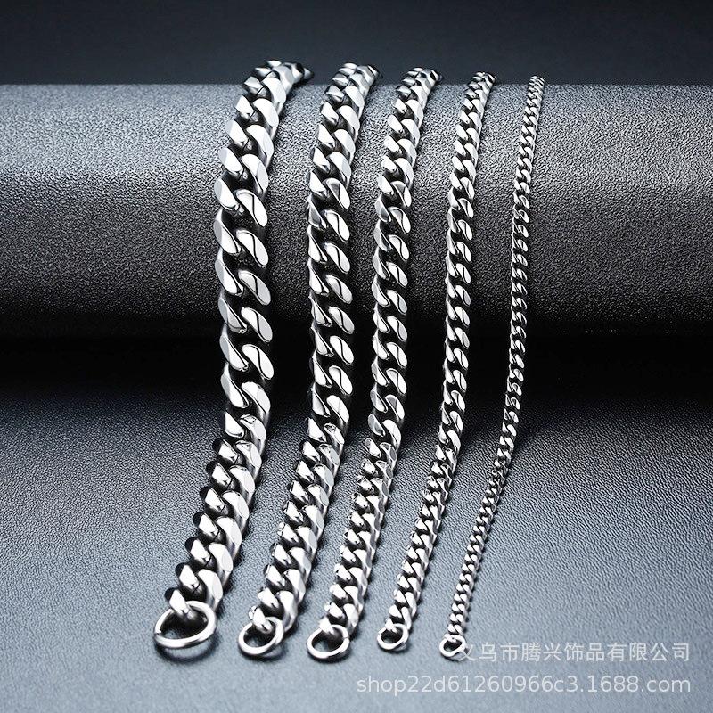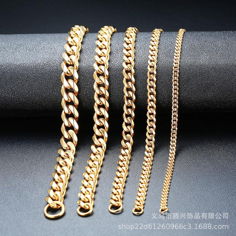 Nueva pulsera de cadena cubana de oro transfronteriza para hombre, de acero de titanio, de 3/5/7/9 mm de ancho.