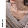 Cadena de oro auténtico de 18 quilates bañada en cobre que conserva el color, cadena de clavícula francesa con bola pequeña de oro, collar metálico con temperamento frío.