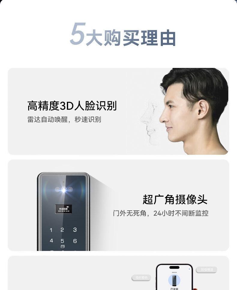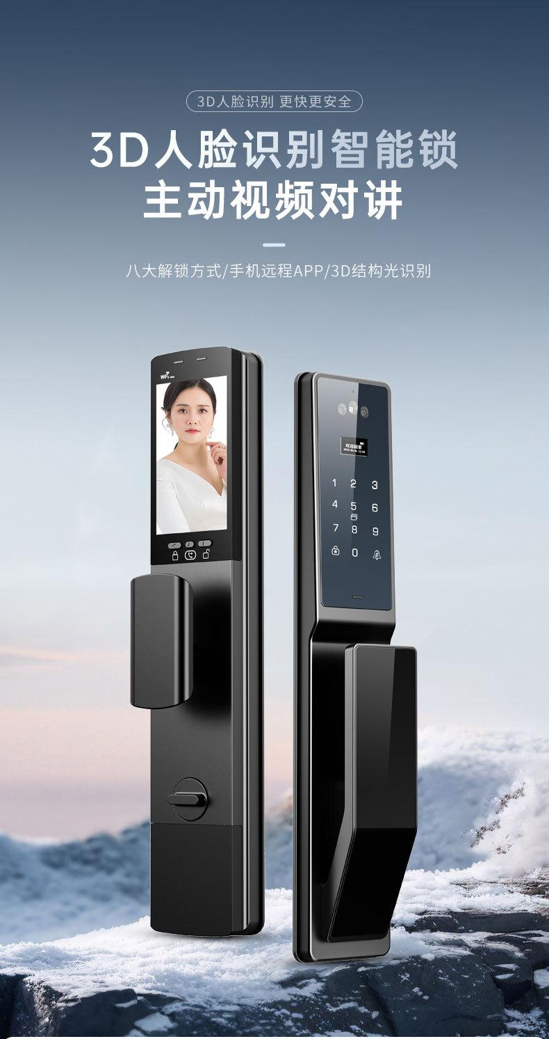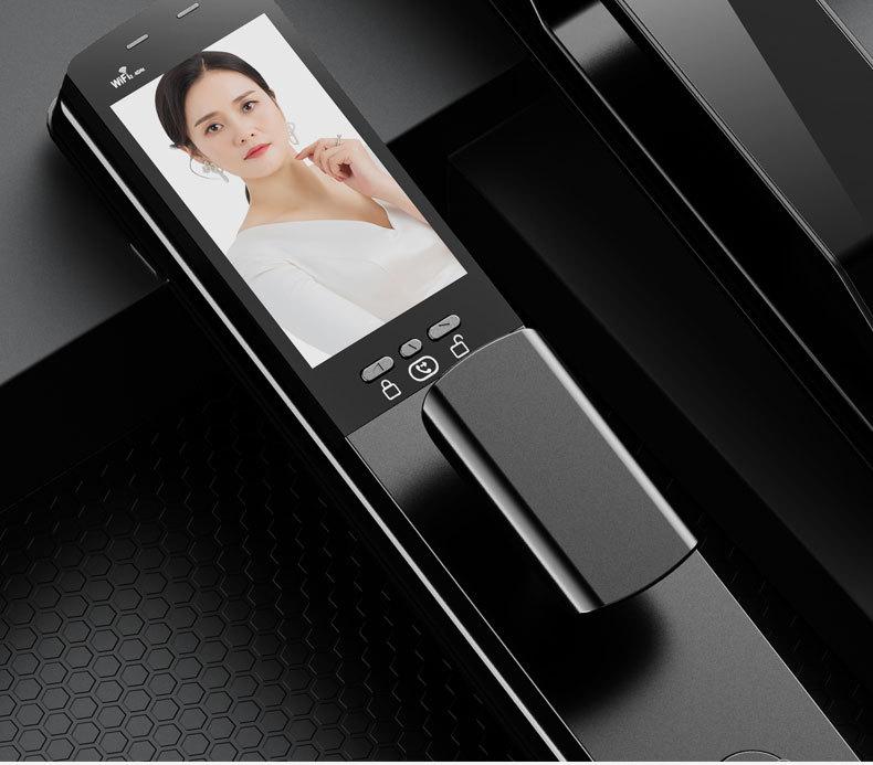 Cerradura de huella digital reconocimiento facial 3D captura cerradura de puerta inteligente automática intercomunicador de video para el hogar doble batería de litio cerradura antirrobo
