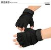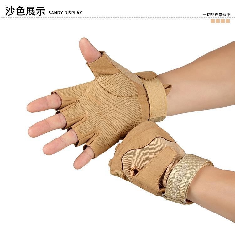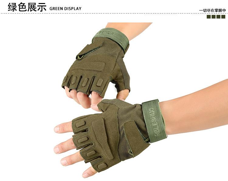 Este es un guante táctico de medio dedo, un guante deportivo y de fitness para ciclismo al aire libre, antideslizante, a prueba de sol, que es cómodo al tacto y duradero.GuantesAcabado fino y costuras pulcras. Este modelo está disponible en 3 colores: negro, verde militar y arena.
