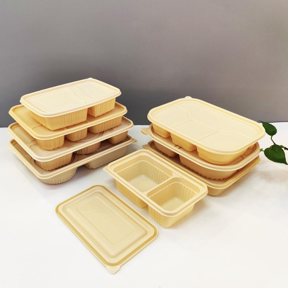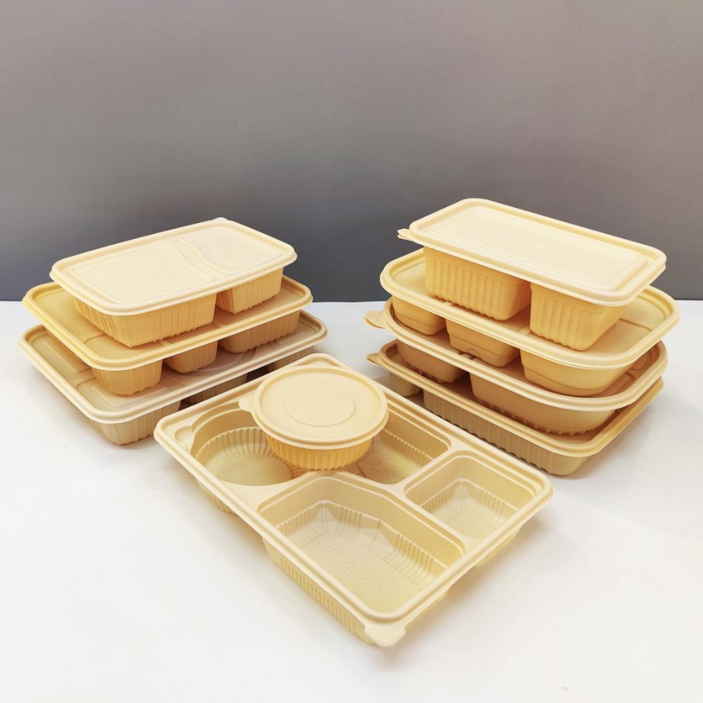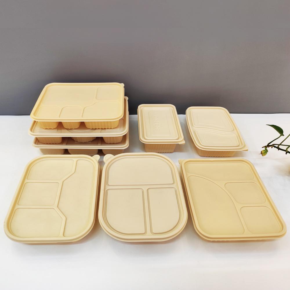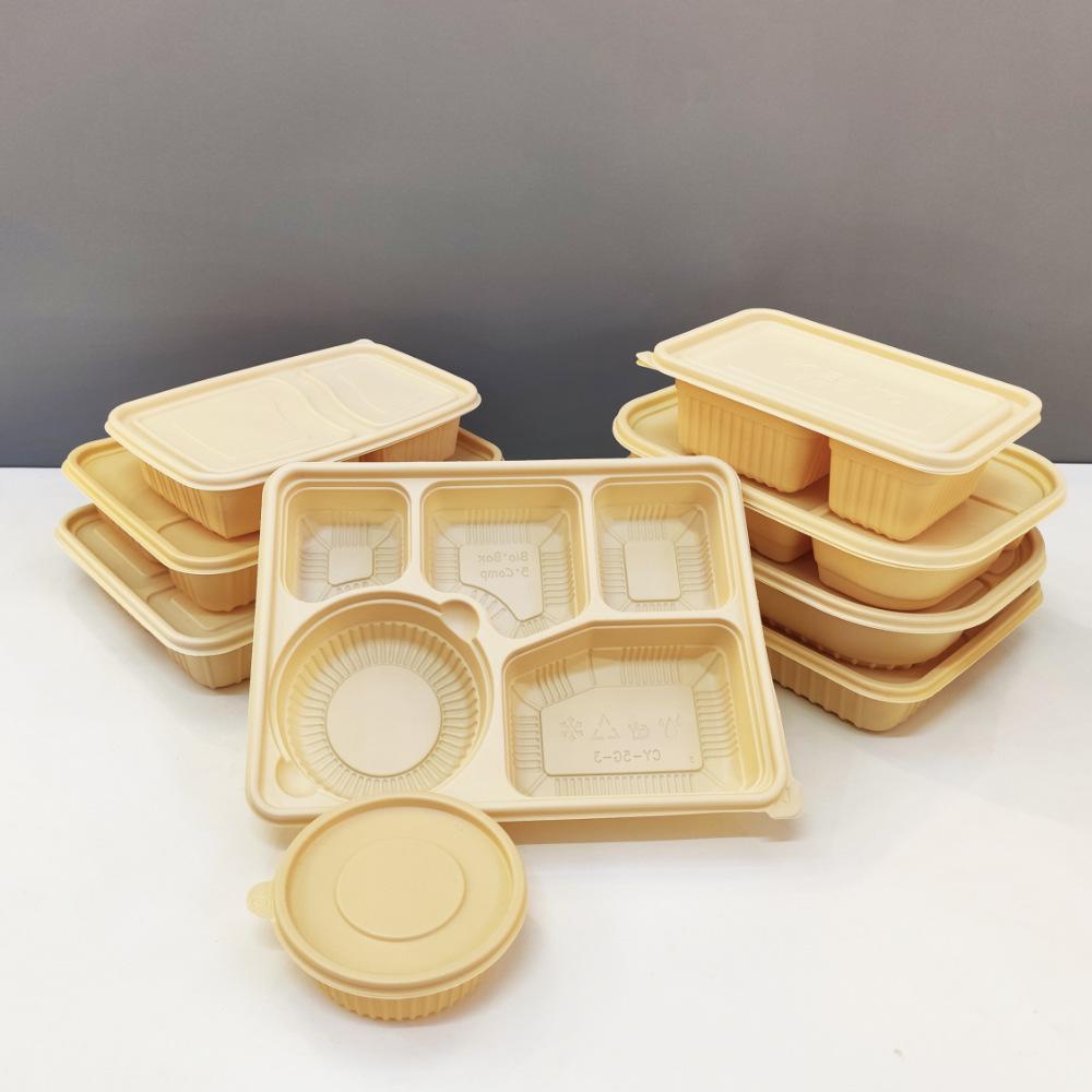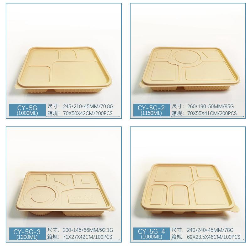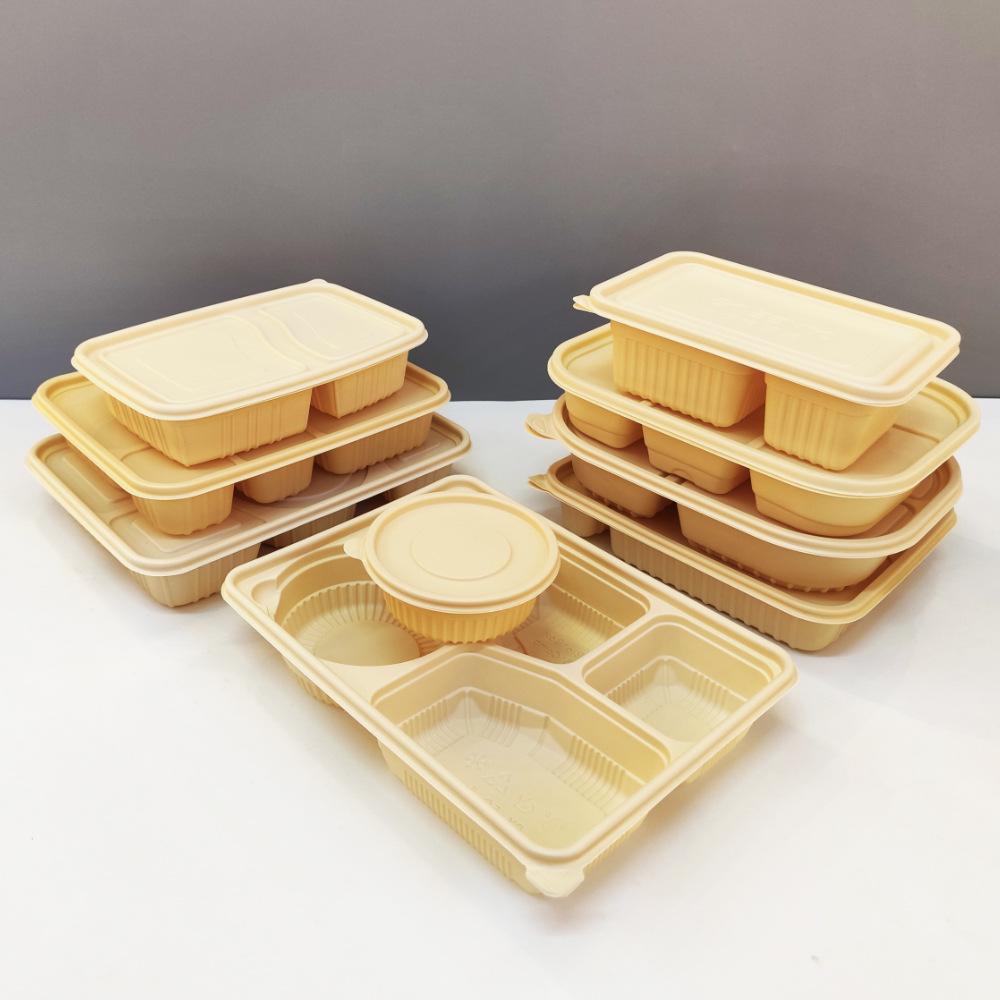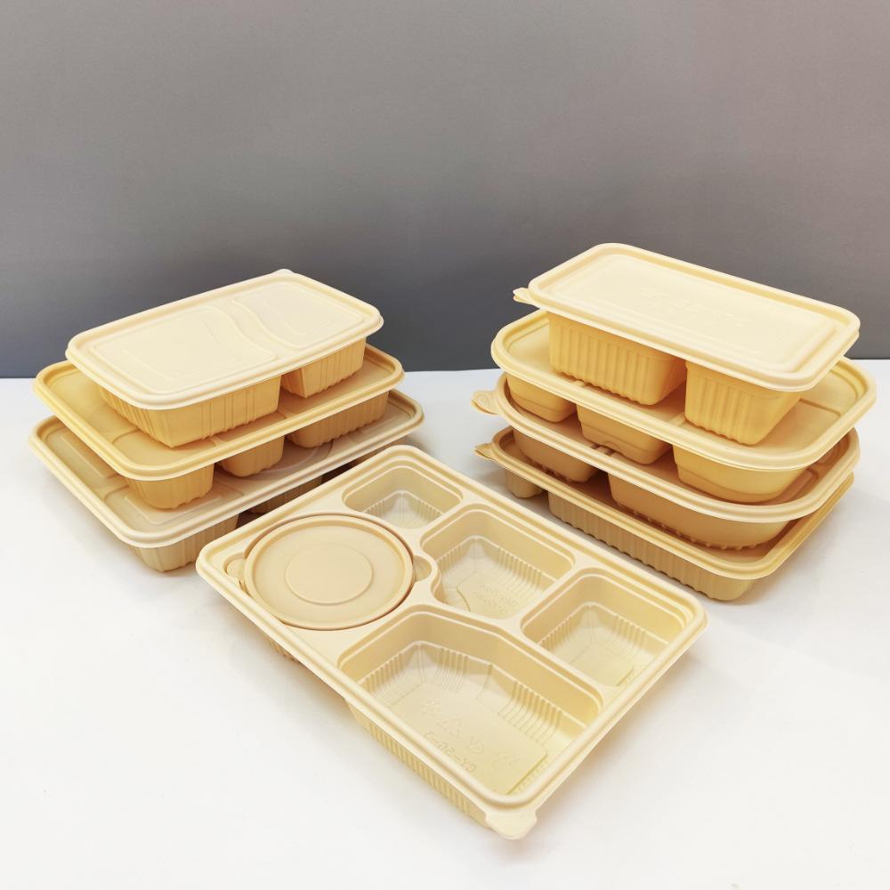 Fiambrera de cinco compartimentos de almidón de maíz Desechable Para llevar Catering A prueba de fugas Protección ambiental Fiambrera Cuadrada Multicompartimento Caja para llevar Comida rápida