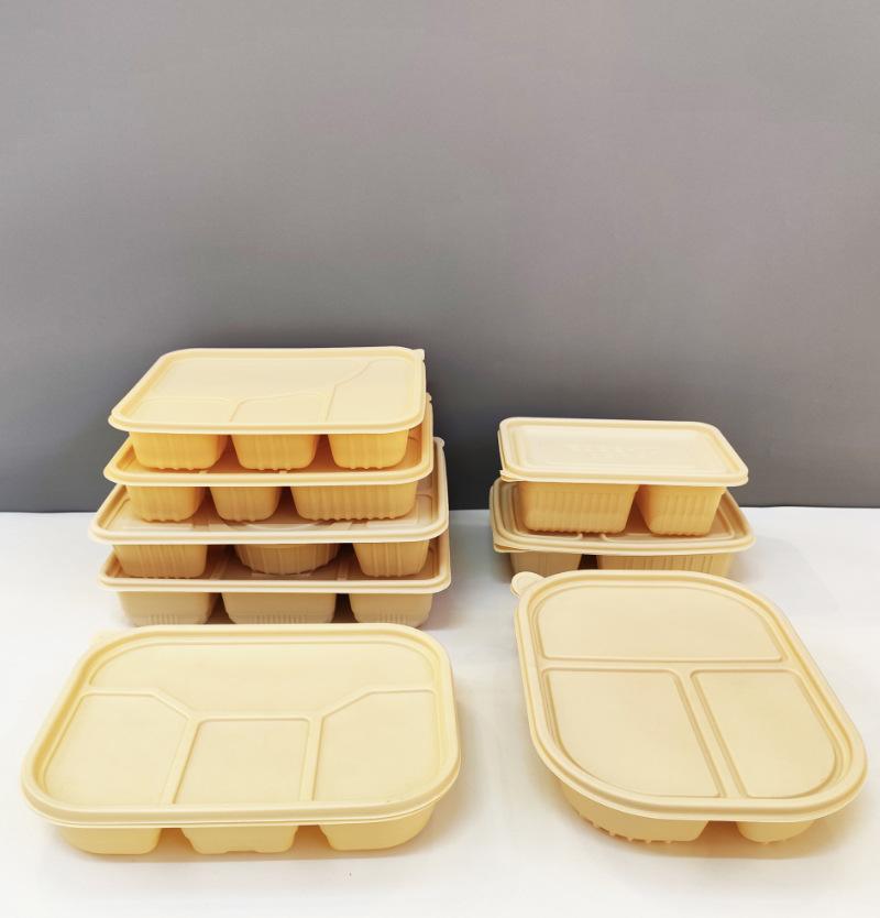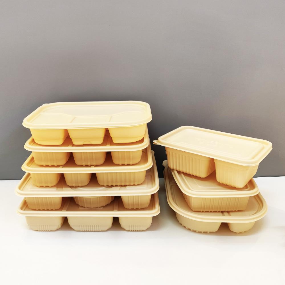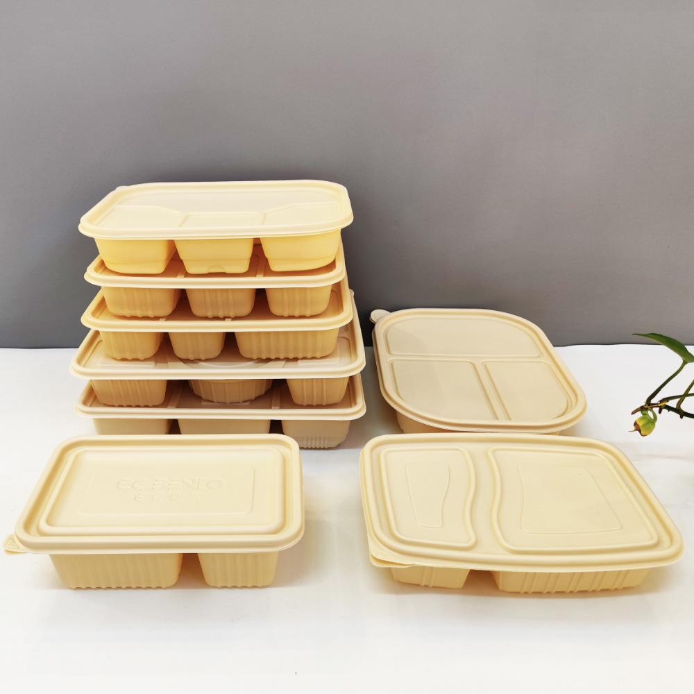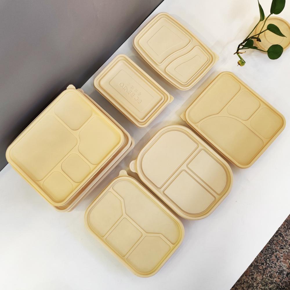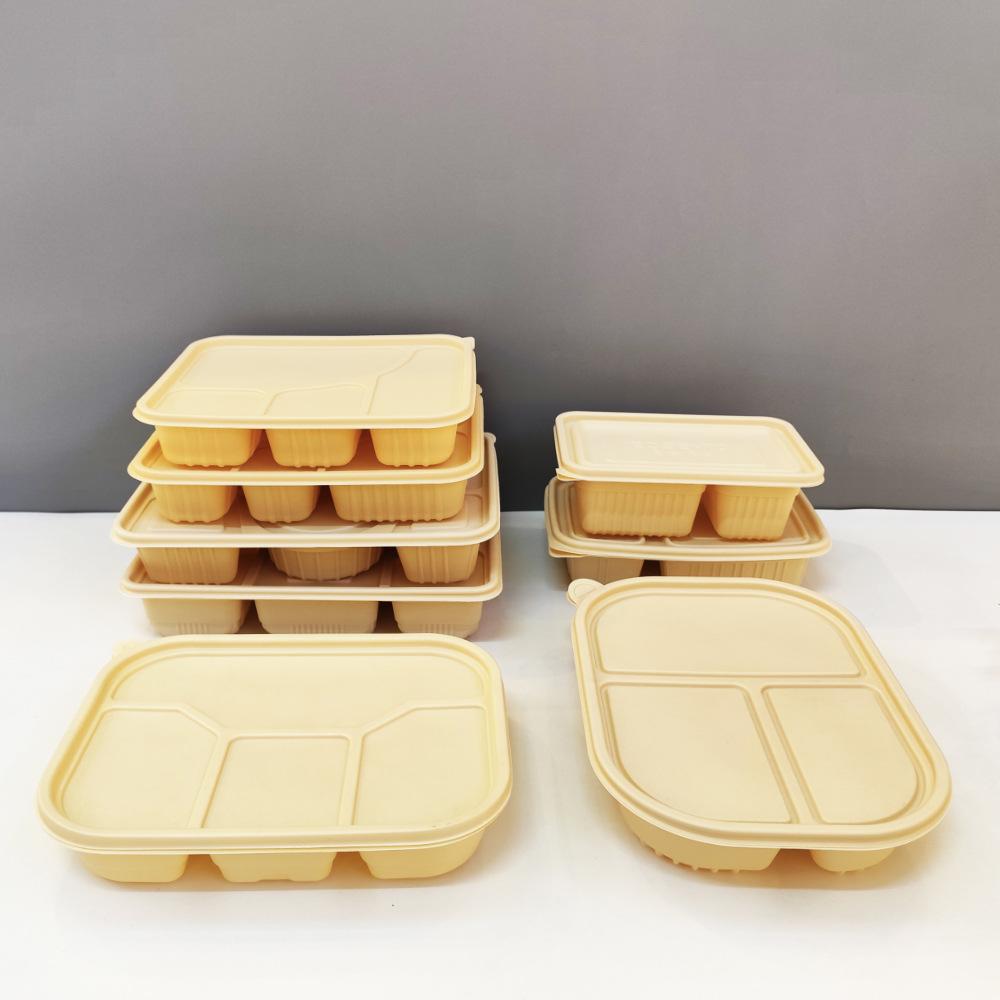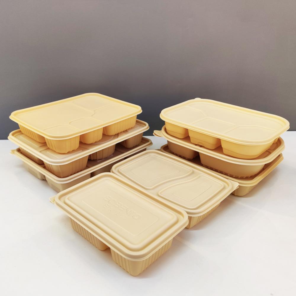 Fiambrera de cinco compartimentos de almidón de maíz Desechable Para llevar Catering A prueba de fugas Protección ambiental Fiambrera Cuadrada Multicompartimento Caja para llevar Comida rápida