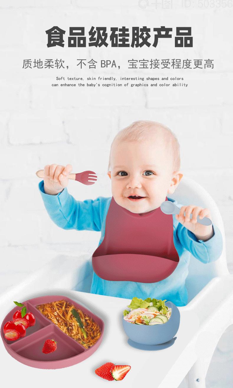 Vajilla infantil, productos para bebés, cuenco de silicona, tenedor, cuchara, cuenco suplementario para bebé, plato de cena, plato de cena de silicona de grado alimenticio