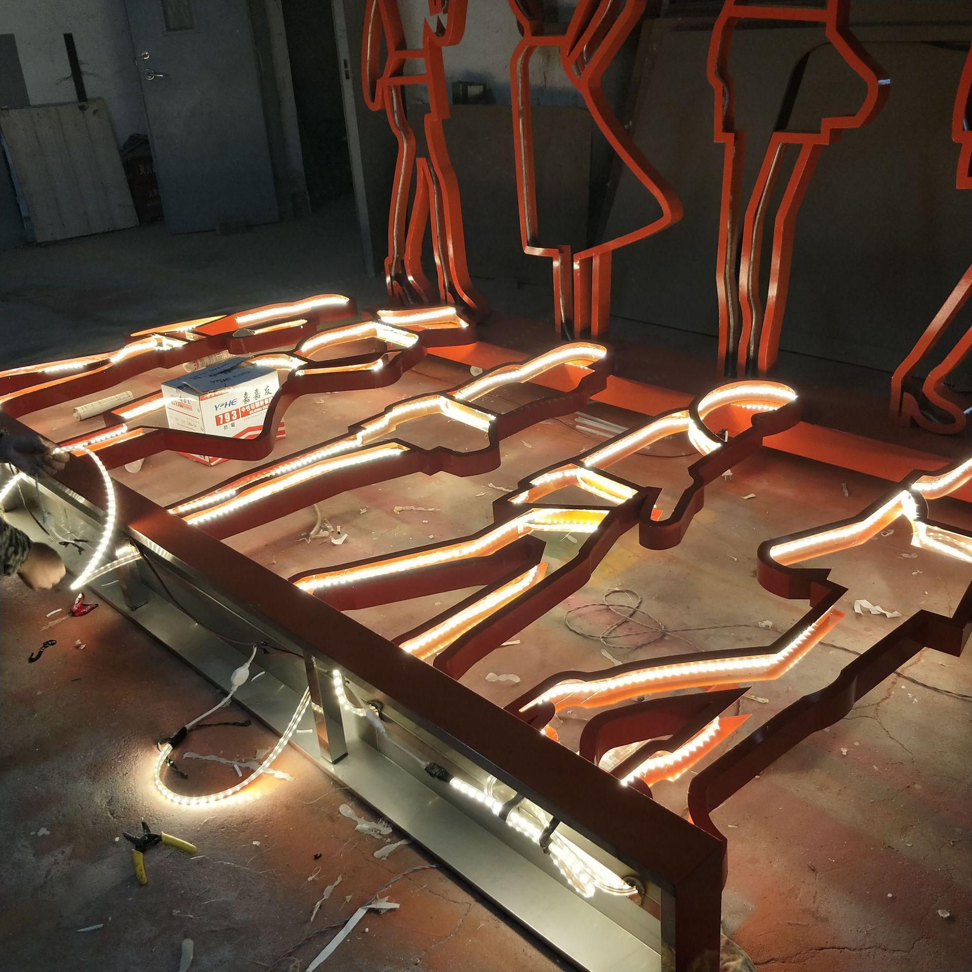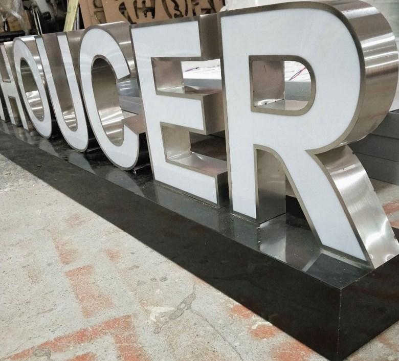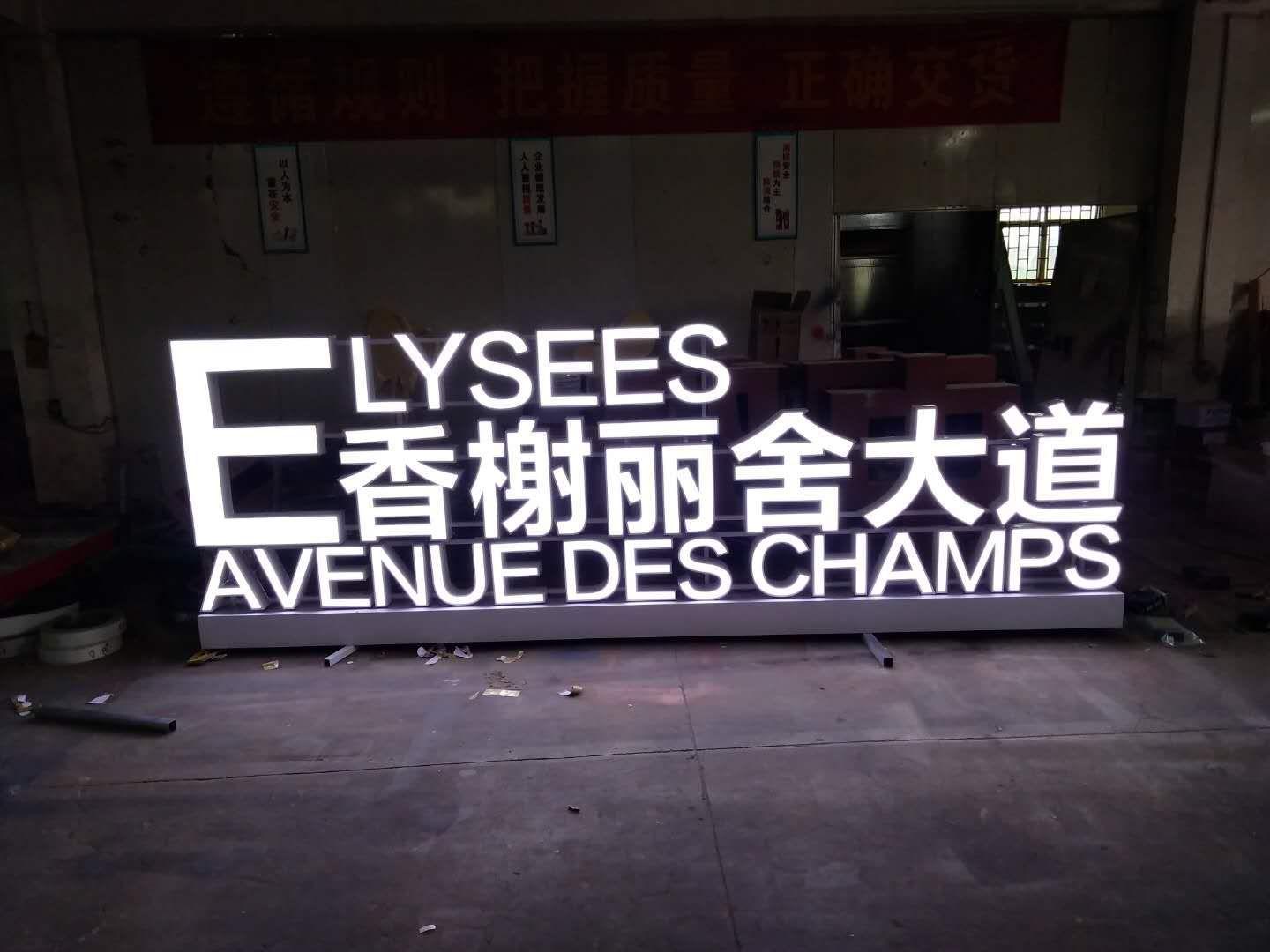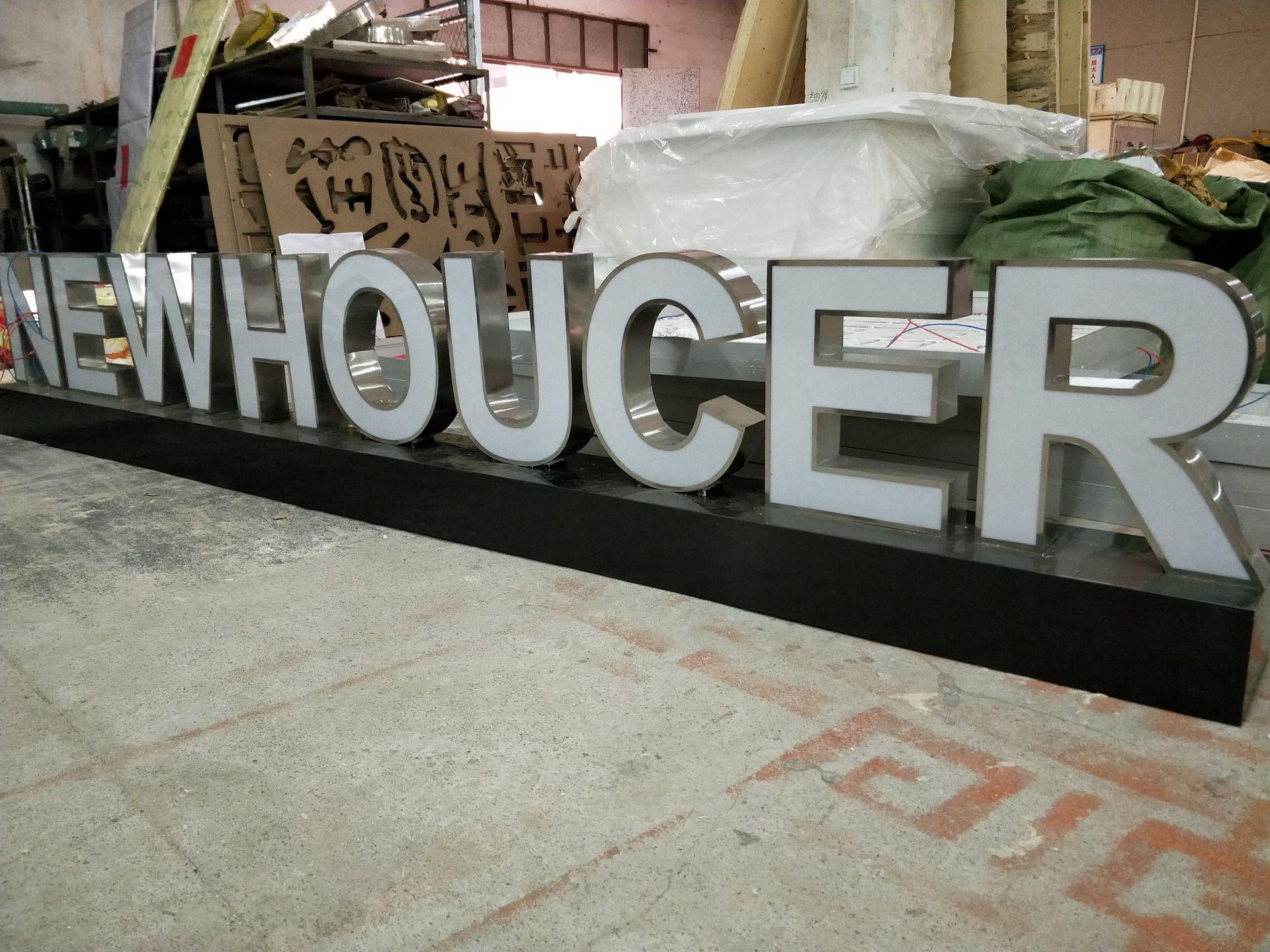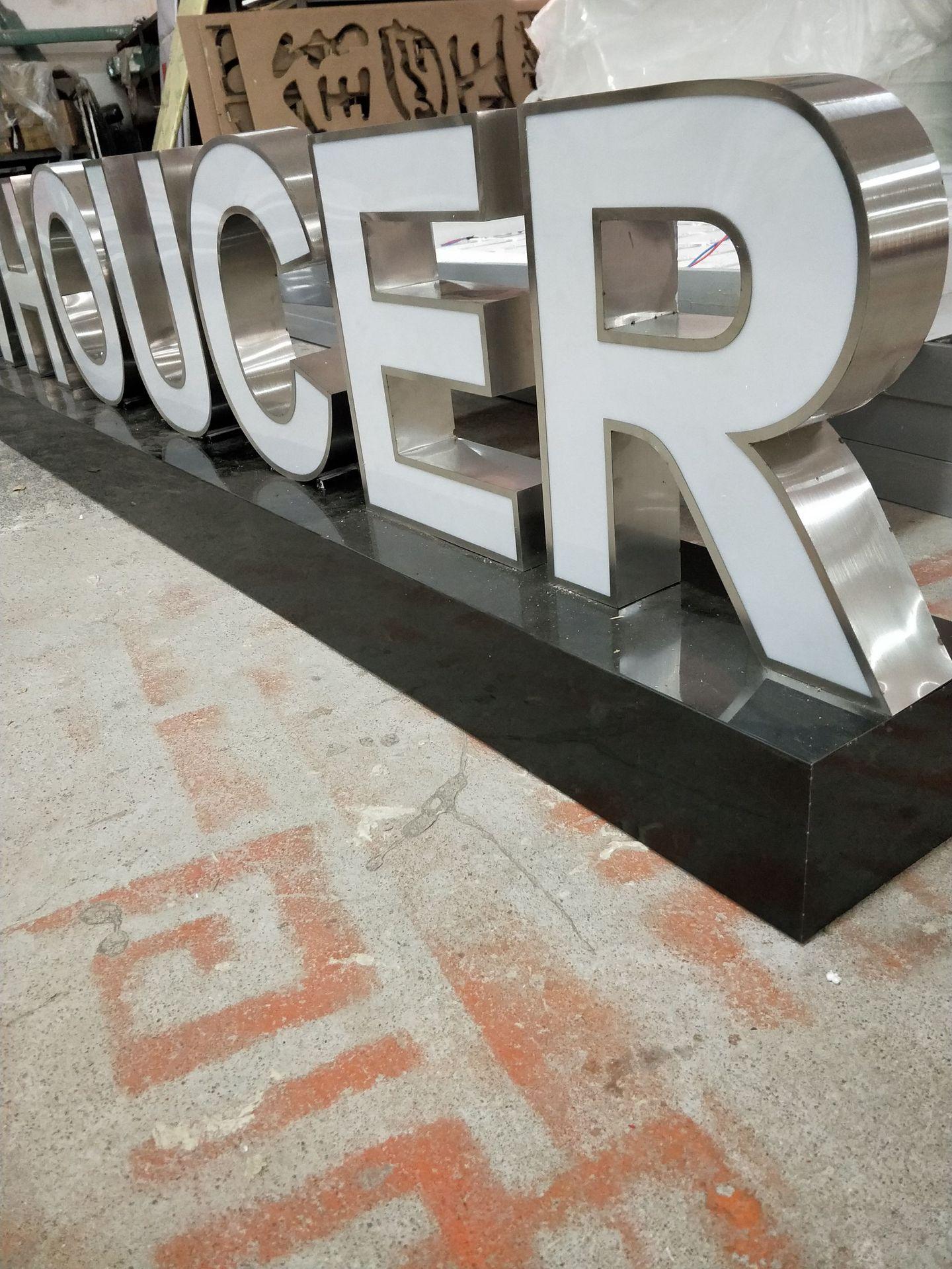 Tarjeta guía de suelo luminosa LED con palabras publicitarias de pintura metálica de acero inoxidable con caracteres tridimensionales grandes para exteriores, directa de fábrica