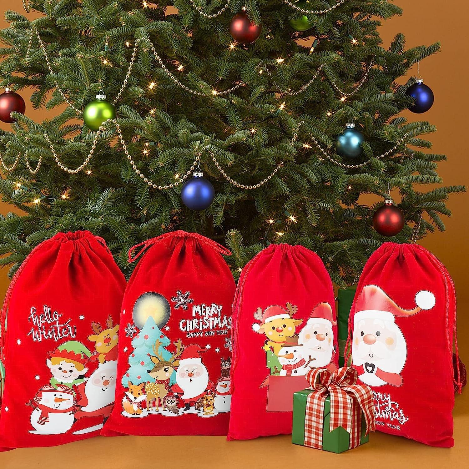 Bolsa de Terciopelo Navideño Transfronteriza con Cordón y Solapa de Bolsillo para Pantalones, Bolsa de Almacenamiento para Dulces y Regalos de Fiesta de Navidad de Terciopelo