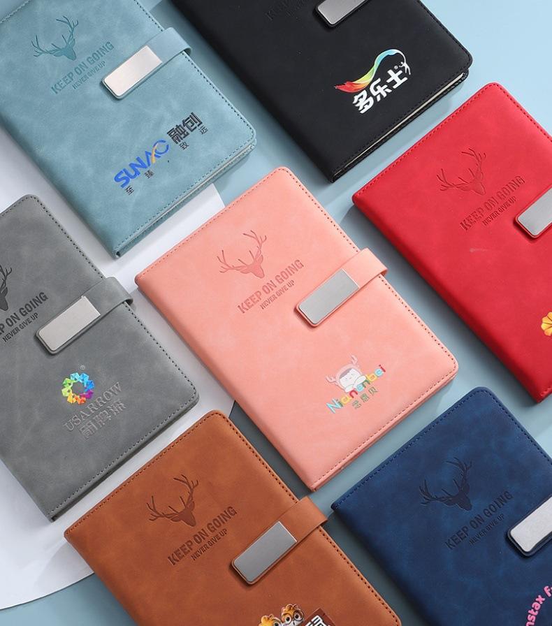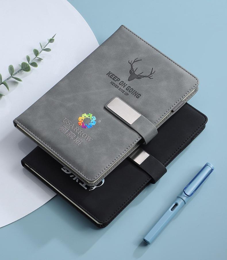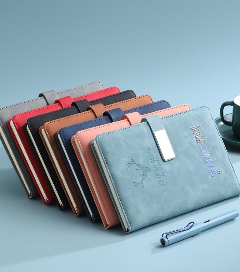 Hebilla de Negocios Cuero de Piel de Oveja A5 Cuaderno de Oficina Logo Personalizado Venta al por Mayor Set Cuaderno Diario Caja de Regalo Personalizada
