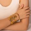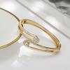 Pulsera de acero inoxidable chapada en oro de 18 quilates con diseño asimétrico y circonitas, estilo popular europeo y americano.