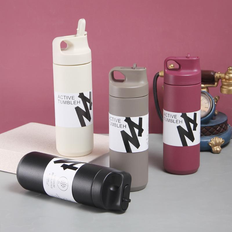 Taza personalizada de acero inoxidable 304 con aislamiento al vacío, asa sencilla, taza de café con boquilla, taza de agua deportiva portátil para exteriores