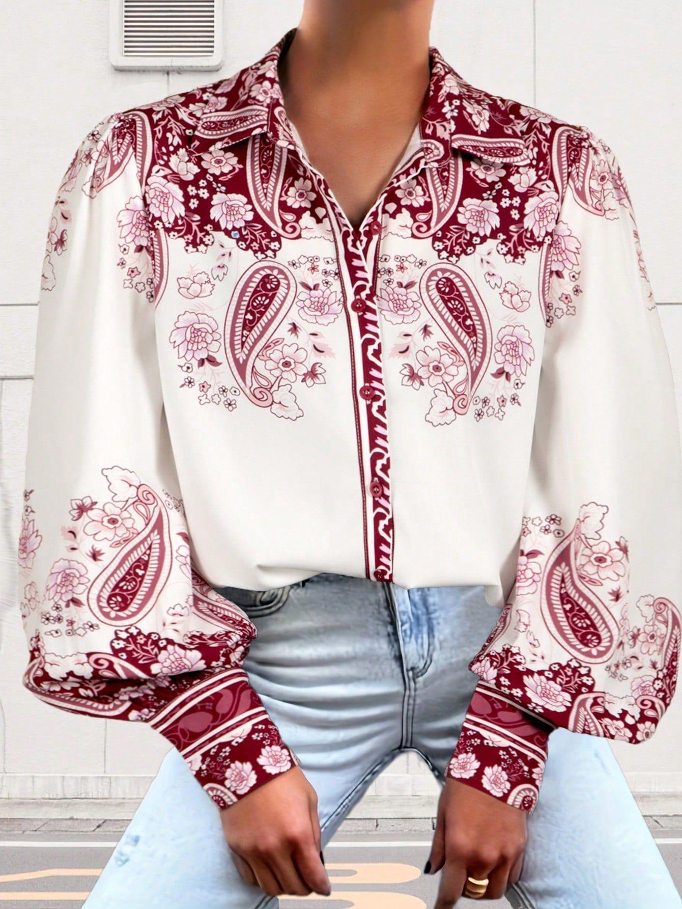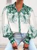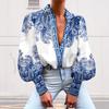 Tops de Mujer Europeos y Americanos Primavera y Otoño 2025 Nuevos Estampado Posicionado Casual Más Fácil de Combinar Solapa Manga Larga Camisas de Mujer a la Moda