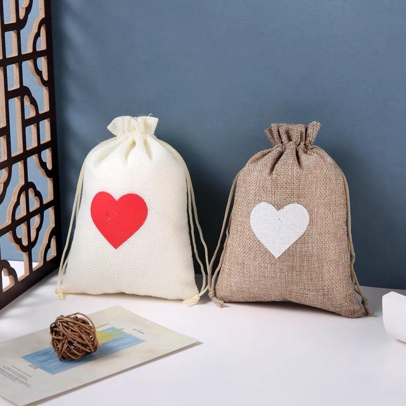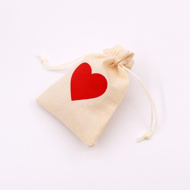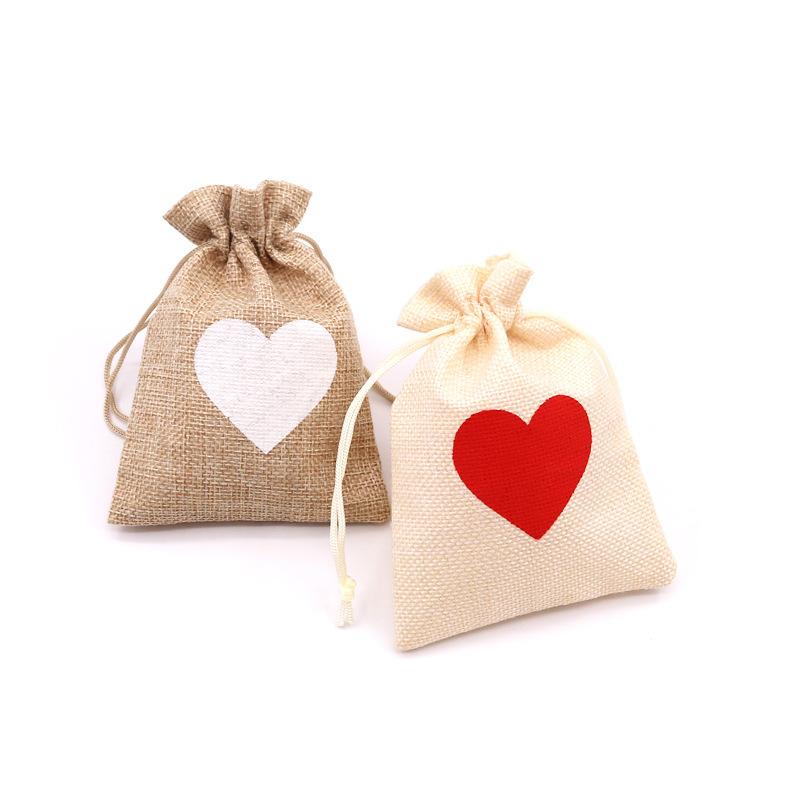 Bolsa de regalo con cordón de arpillera para Navidad, bolsa de regalo con cordón rojo para San Valentín, boda, dulces