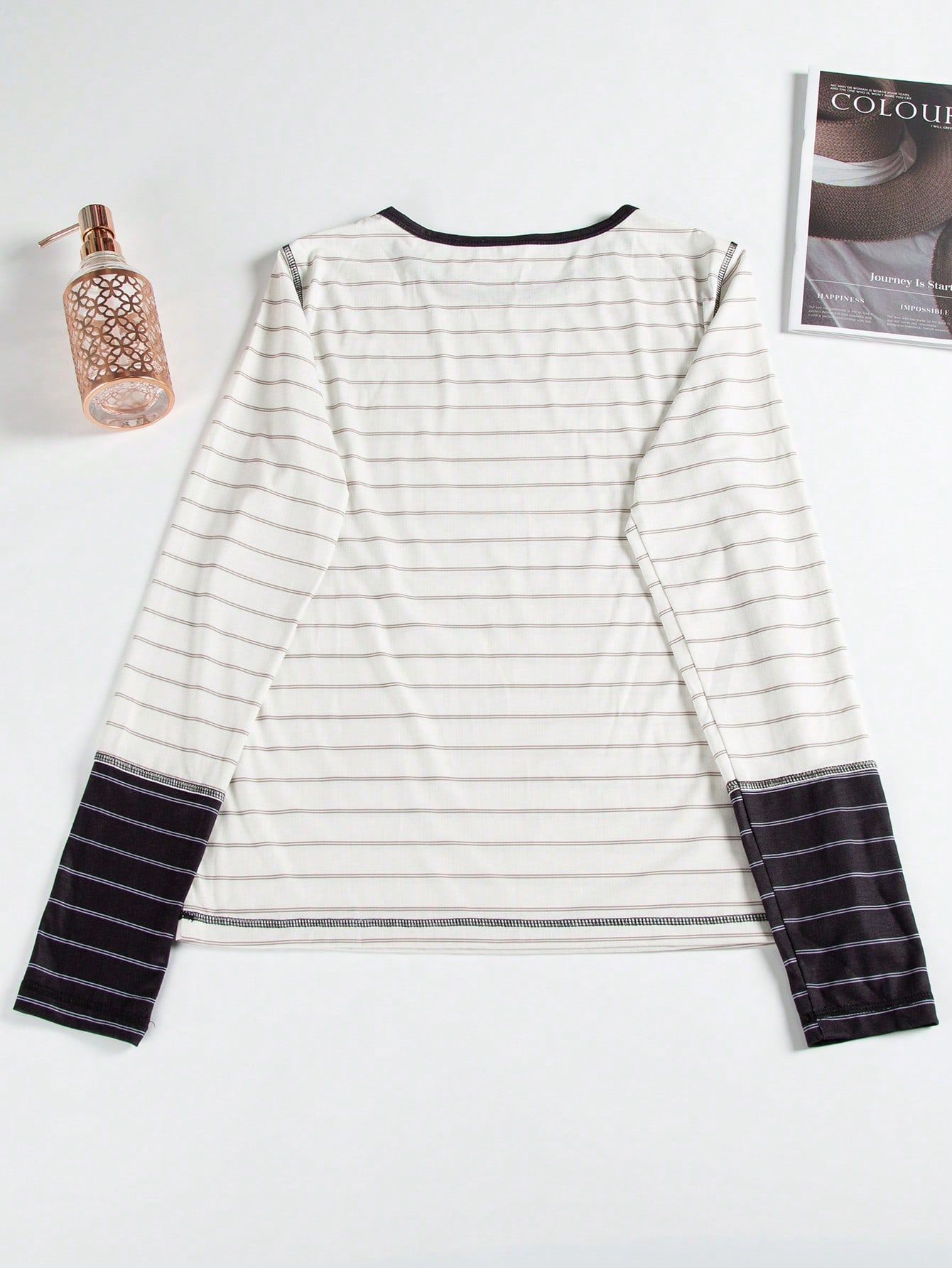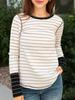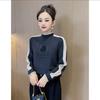 2024 Otoño e Invierno Nuevo Sentido de Alta Gama Contraste Camiseta de Rayas para Mujer Manga Larga Cuello Redondo Ajustada Algodón Puro Camiseta Básica para Mujer
