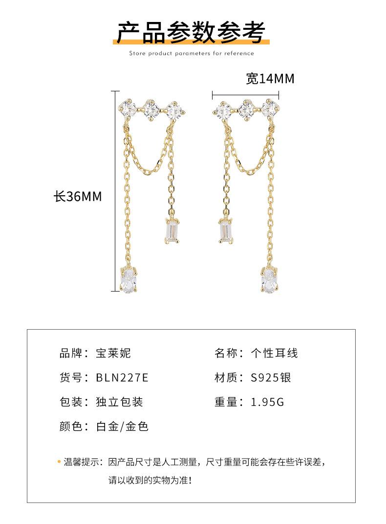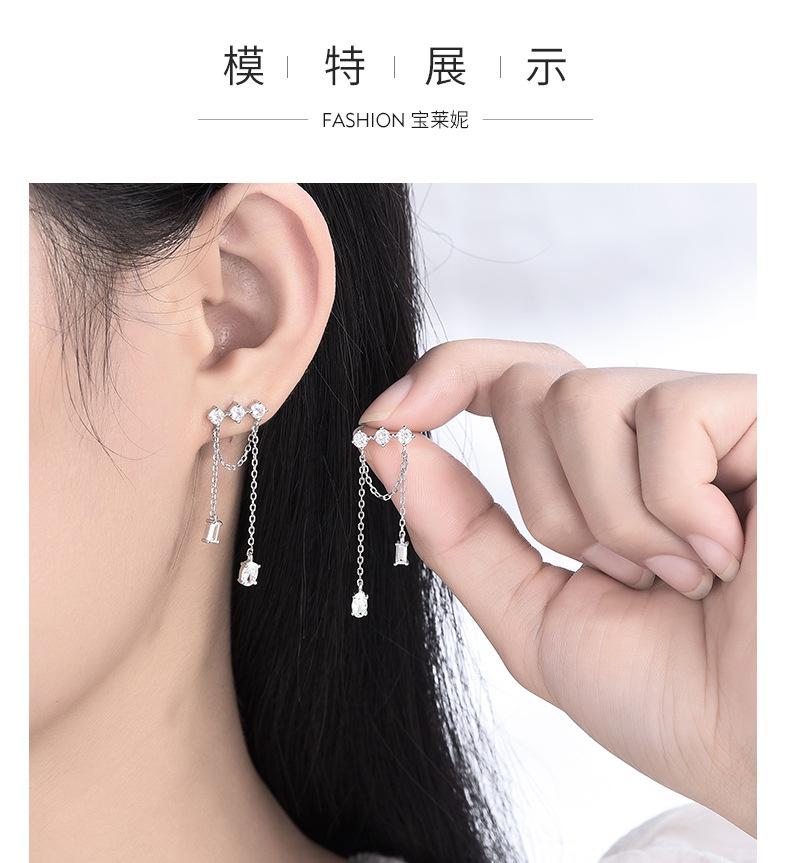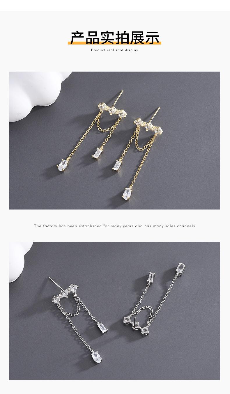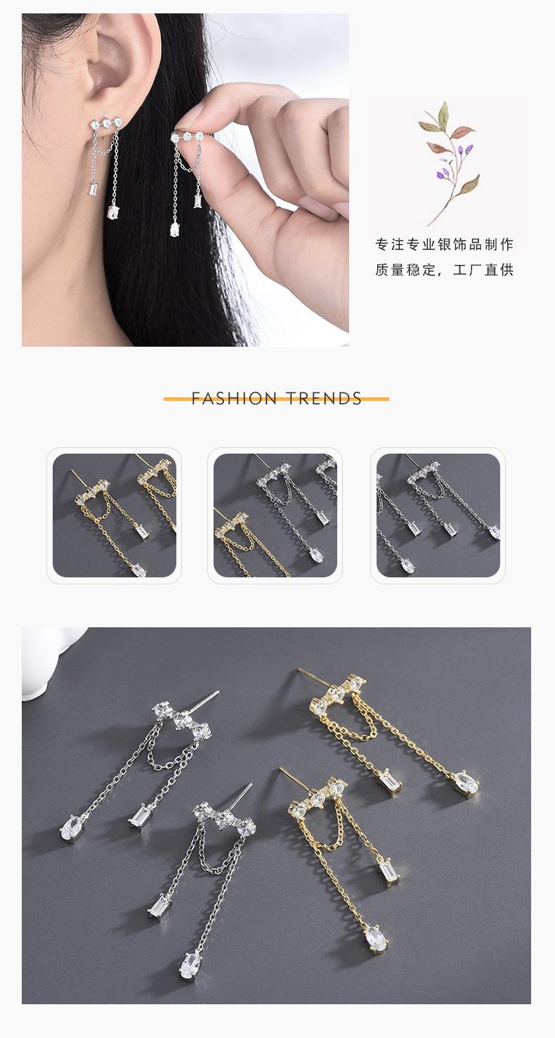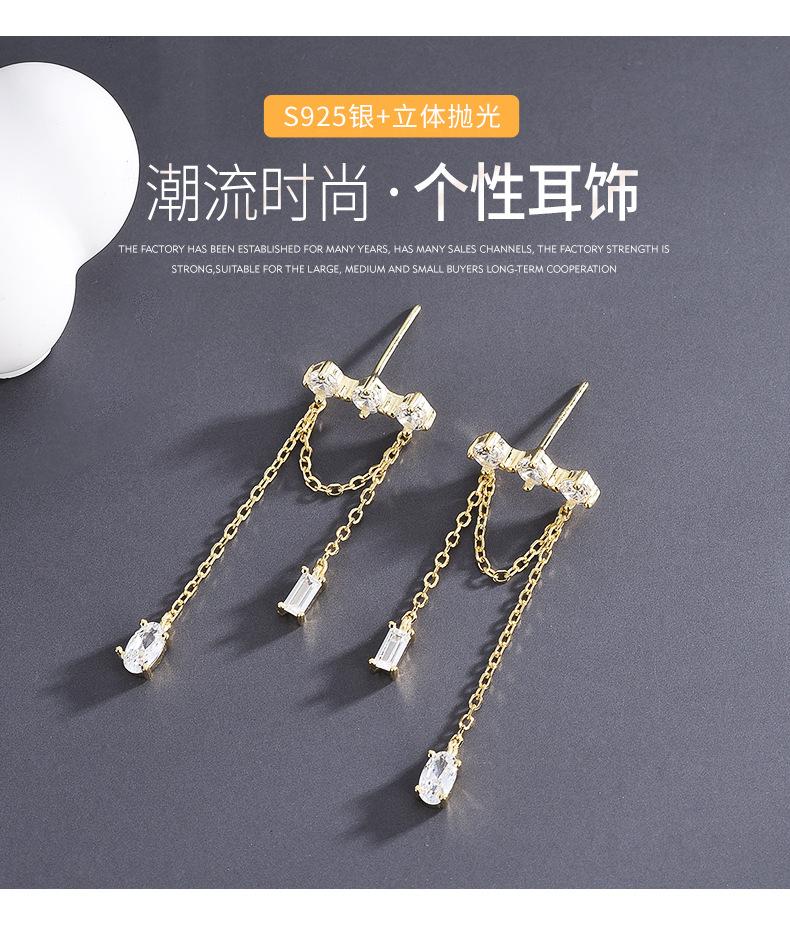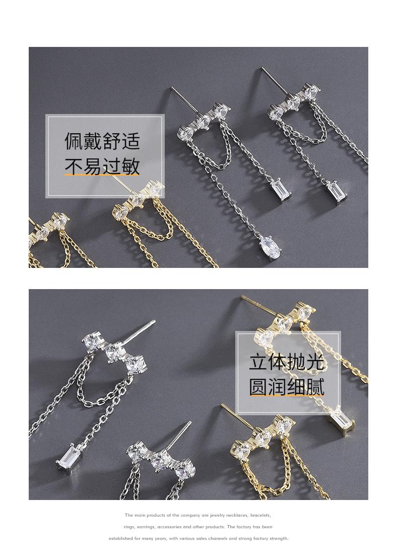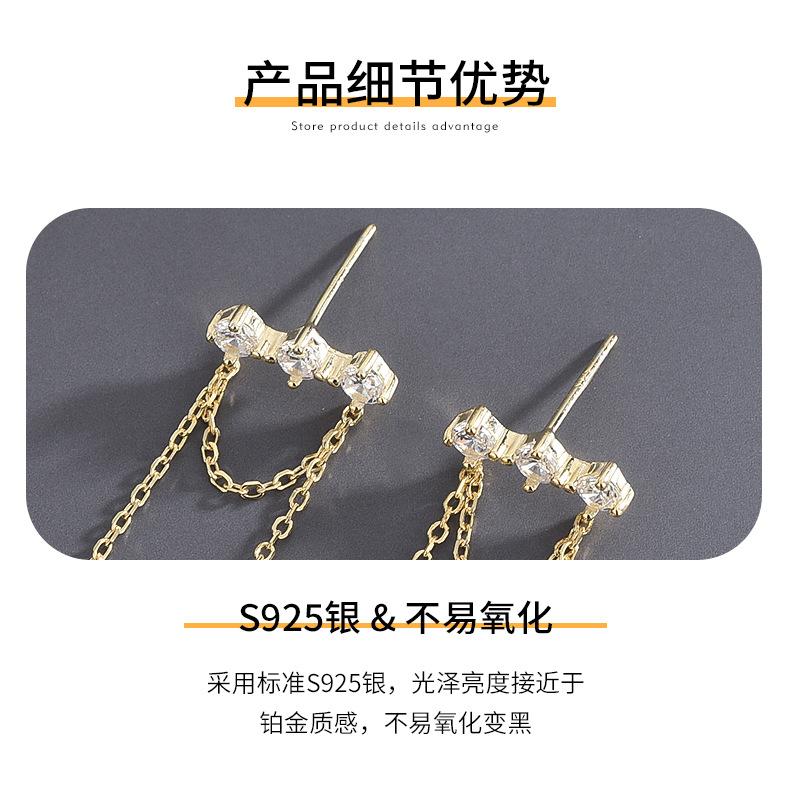 Pendientes sencillos de plata s925 con cadena de borlas y diamantes, diseño de nicho Dongdaemun, elegantes.
