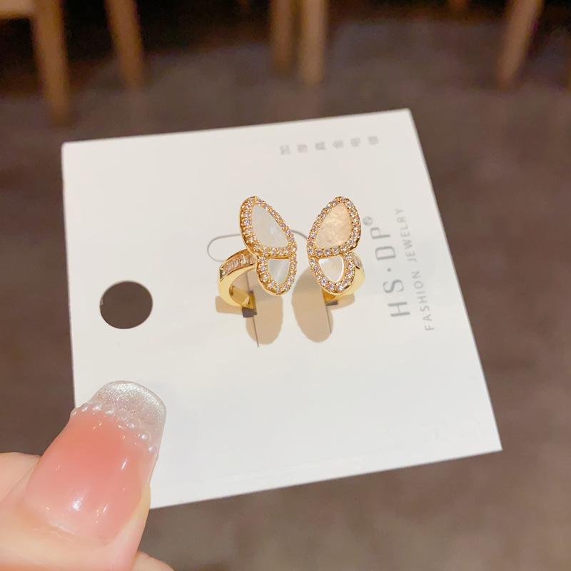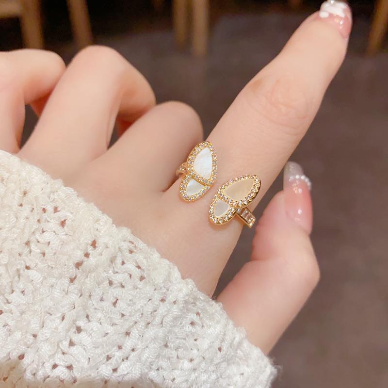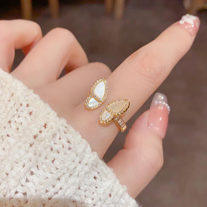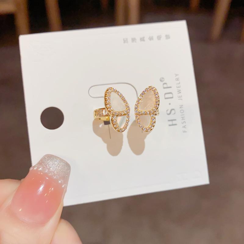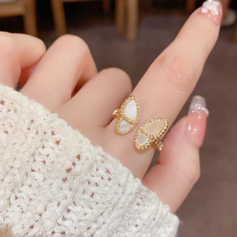 Anillo de mariposa de circón de concha para mujer, apertura ajustable, diseño de nicho, anillo único de alta gama, anillo para dedo de comida, venta al por mayor