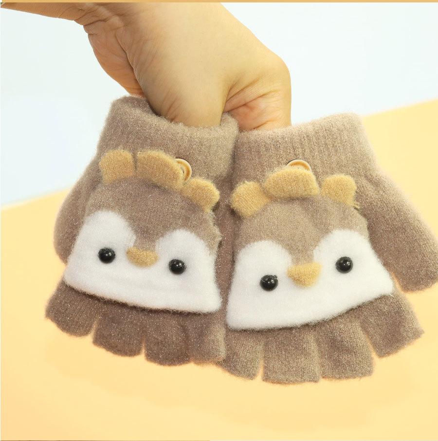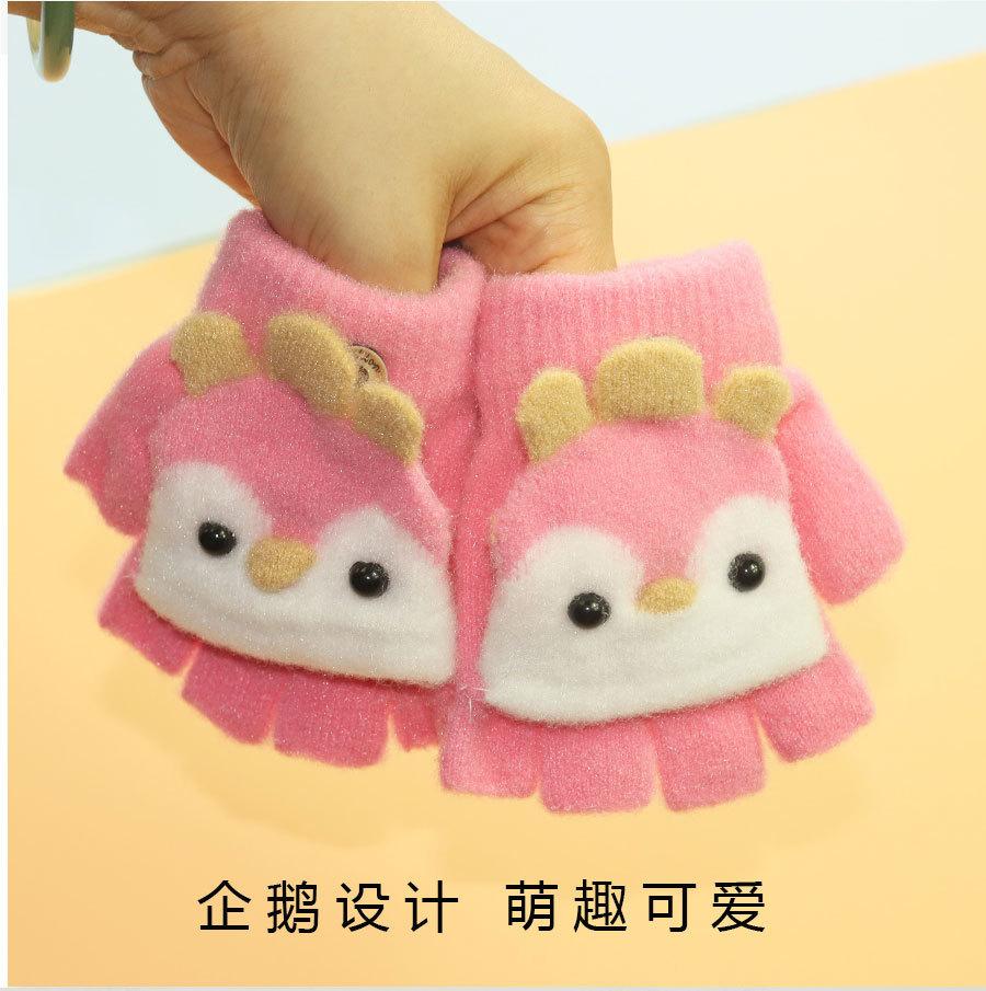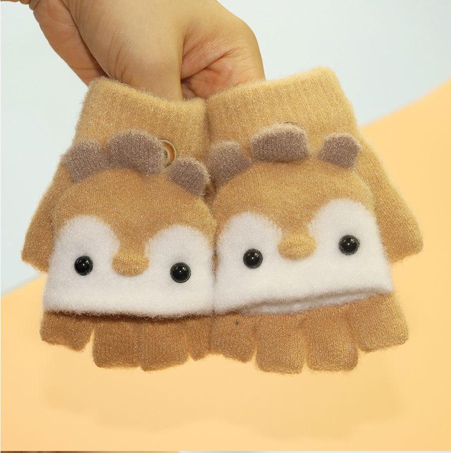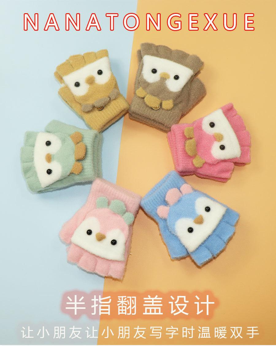 Guantes de medio dedo para niños, otoño e invierno, gruesos y cálidos, para bebés, niños y niñas, de cinco dedos, para estudiantes de primaria.