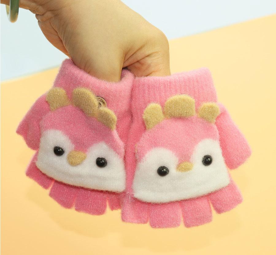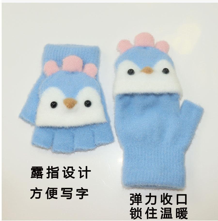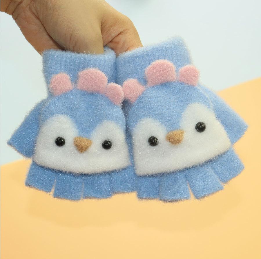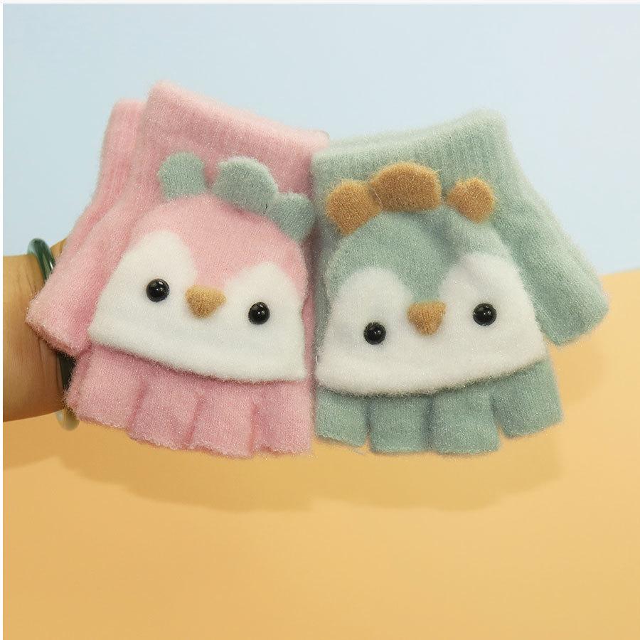 Guantes de medio dedo para niños, otoño e invierno, gruesos y cálidos, para bebés, niños y niñas, de cinco dedos, para estudiantes de primaria.