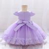 Vestido de niña estilo palacio de nuevo estilo, vestido de princesa con mangas abullonadas y lazo para bebé europeo y americano, disfraz de actuación para bebé de un año