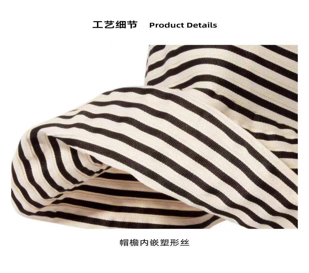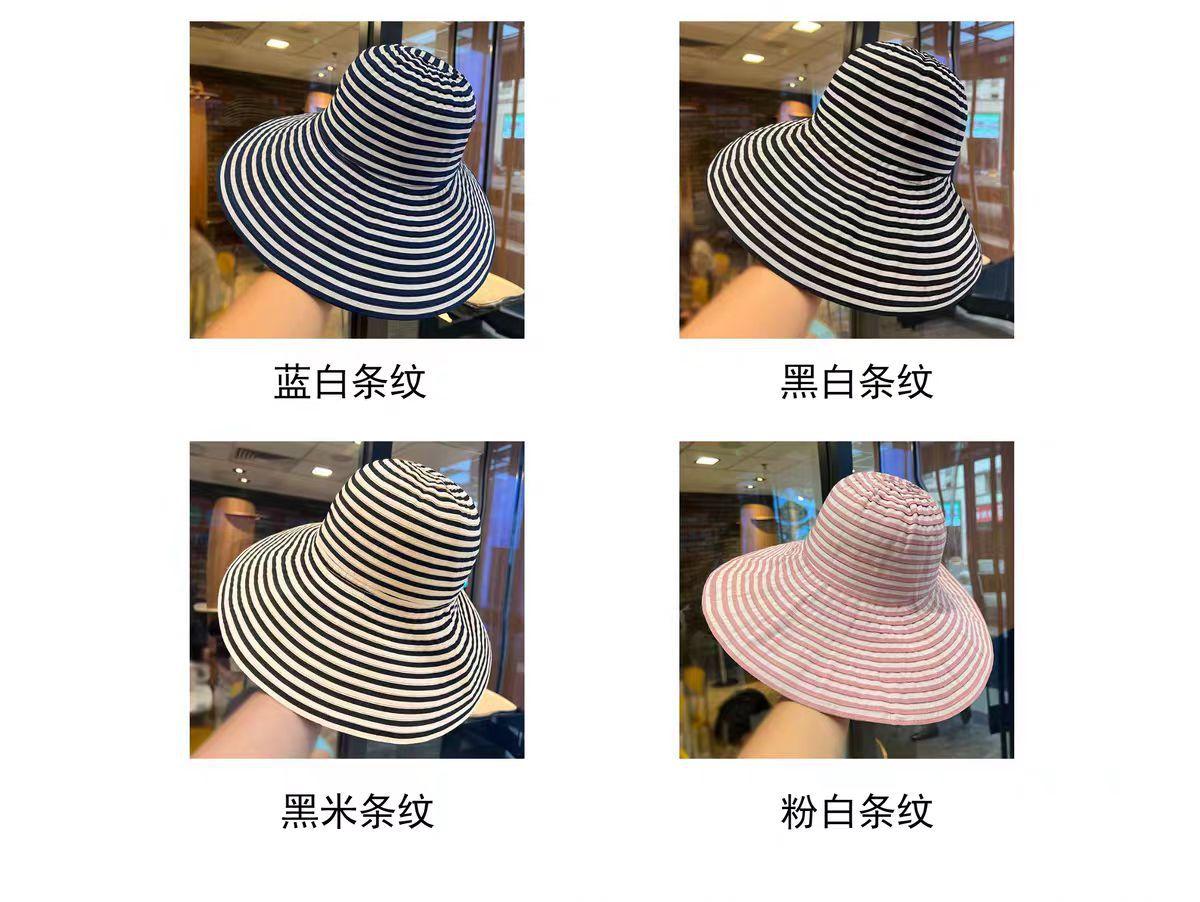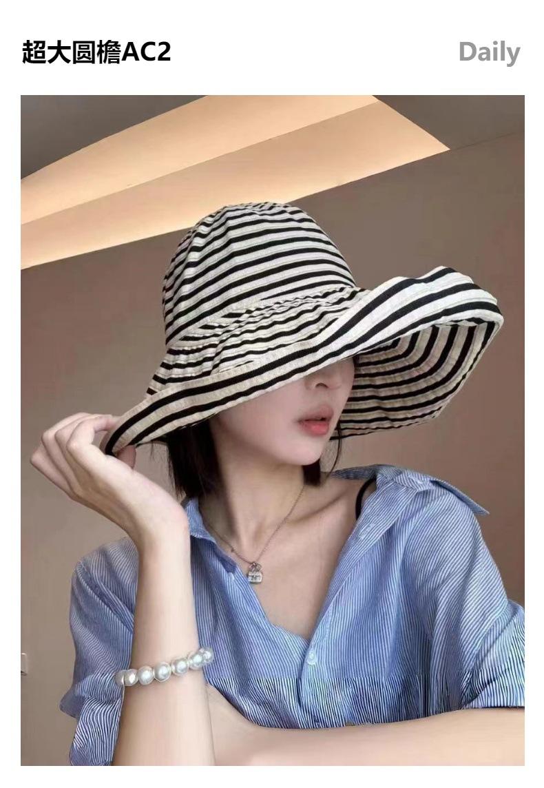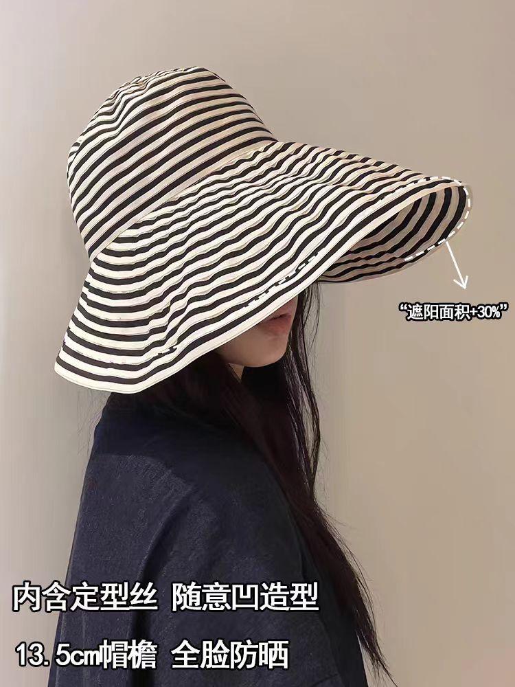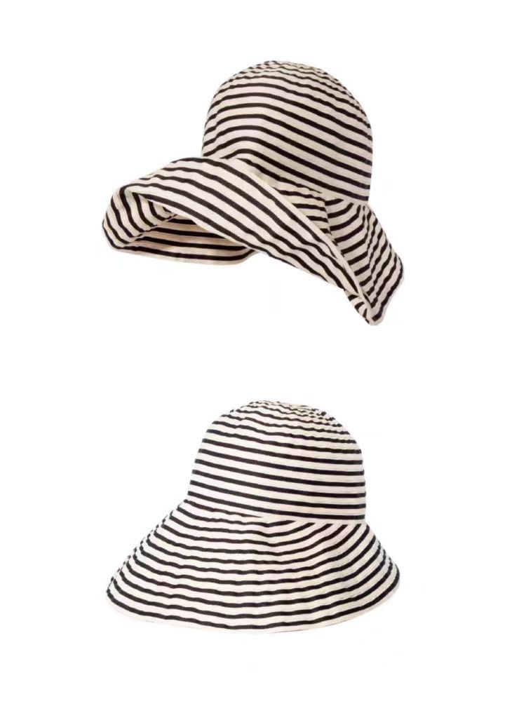 Blue and white dome-ag1 striped large brim sun hat, Black and white dome-ag1 striped large brim sun hat, Black...