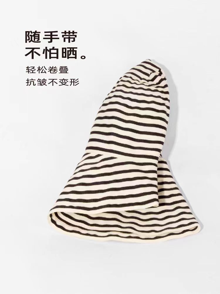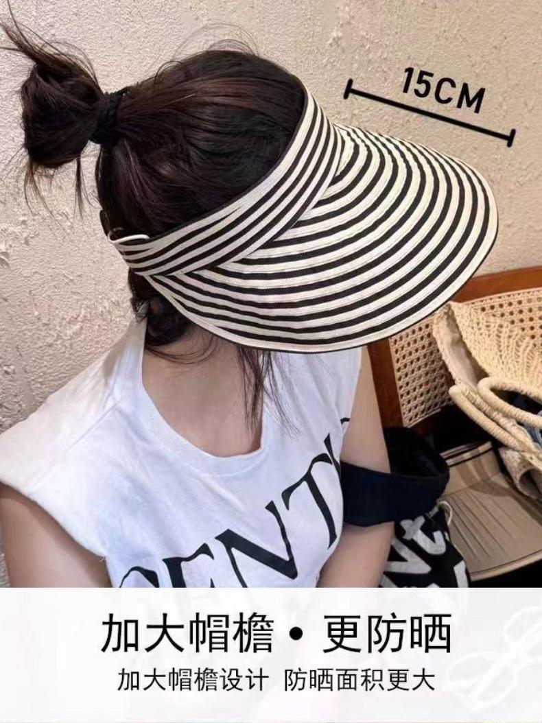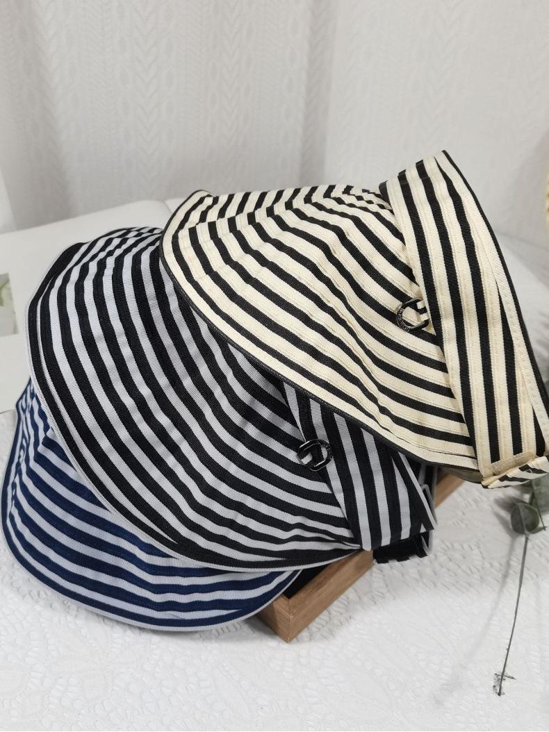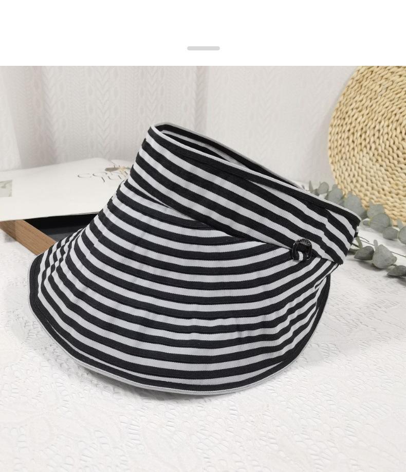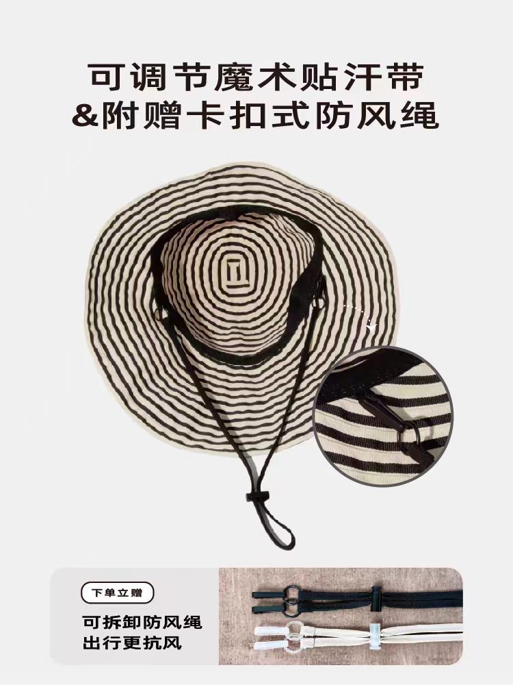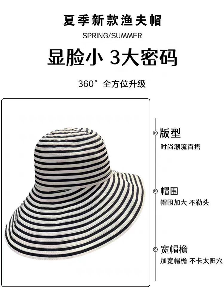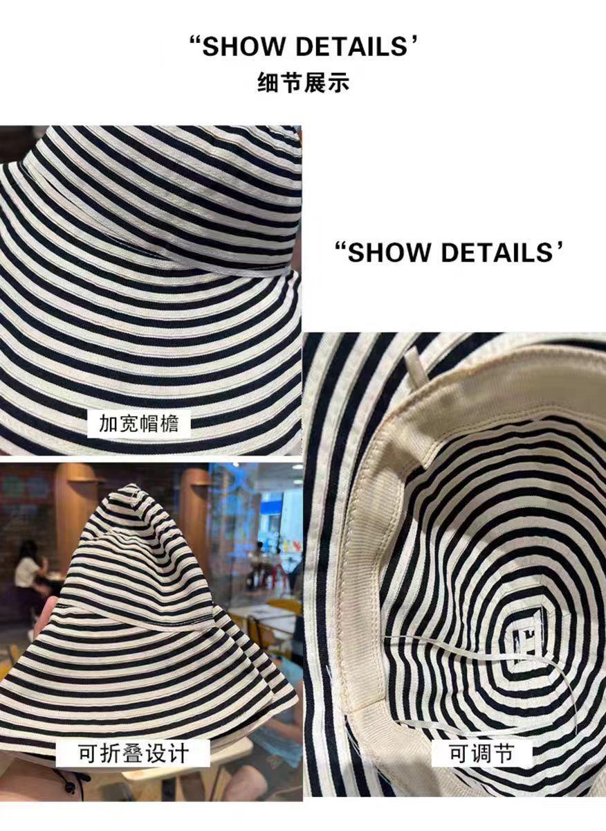 Blue and white dome-ag1 striped large brim sun hat, Black and white dome-ag1 striped large brim sun hat, Black...