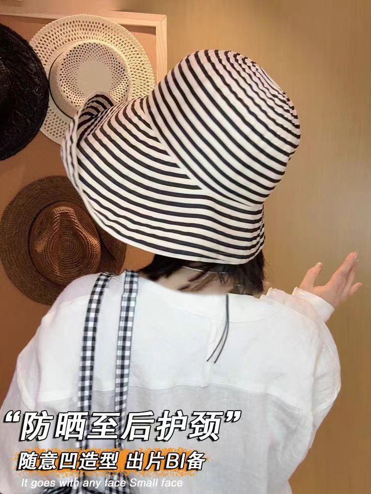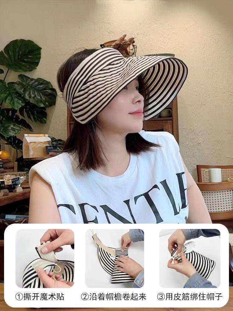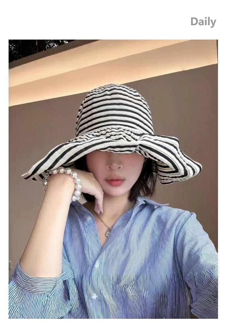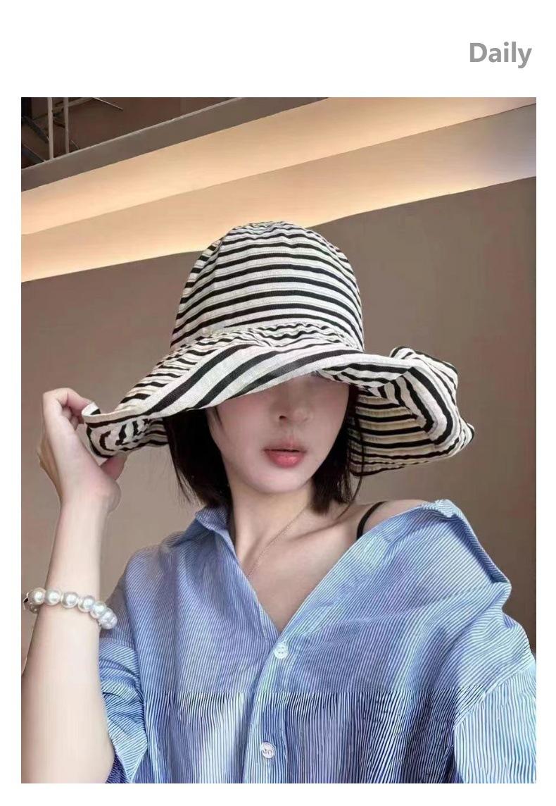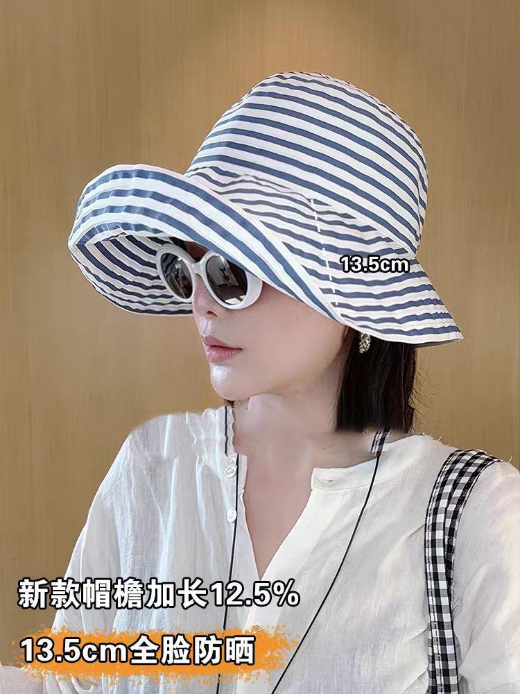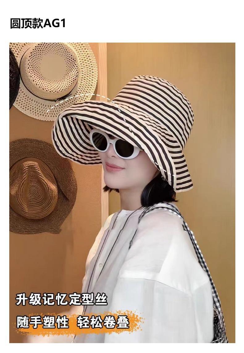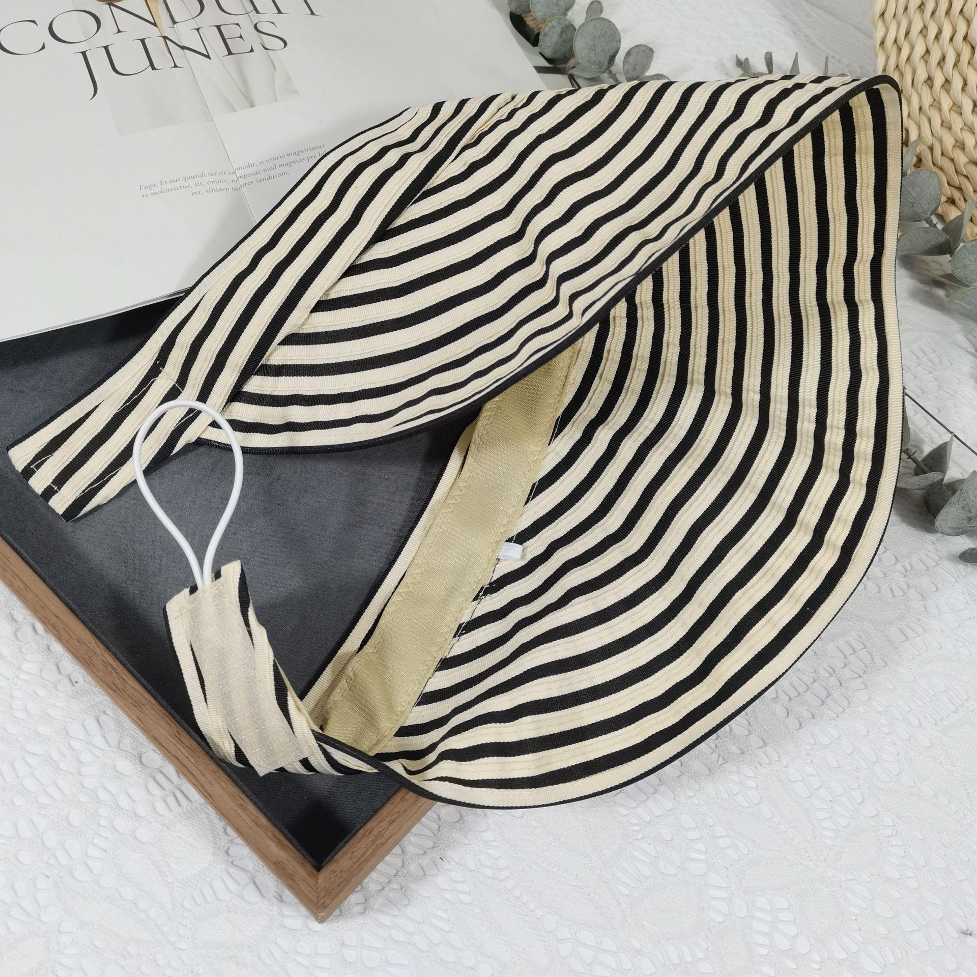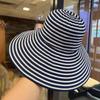 Sombrero parasol de ala grande, moderno, a rayas, para playa, de verano, para mujer, protector solar, pescador, portátil, plegable