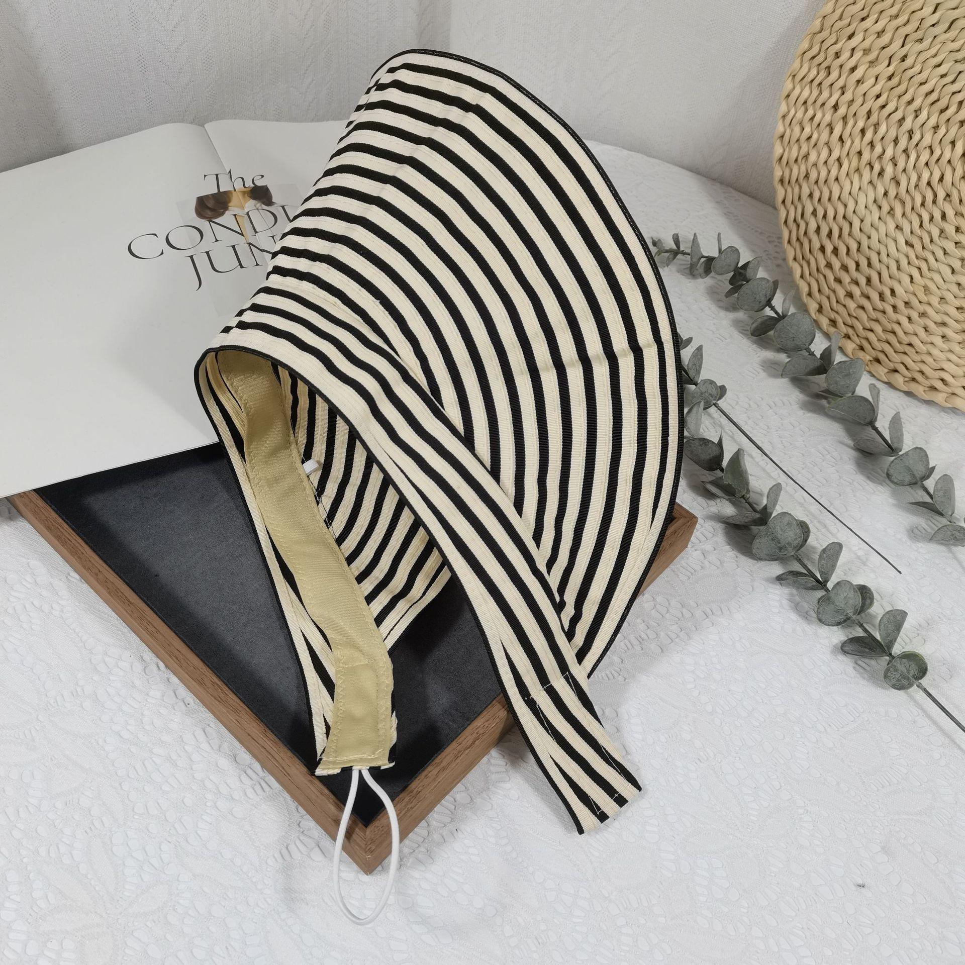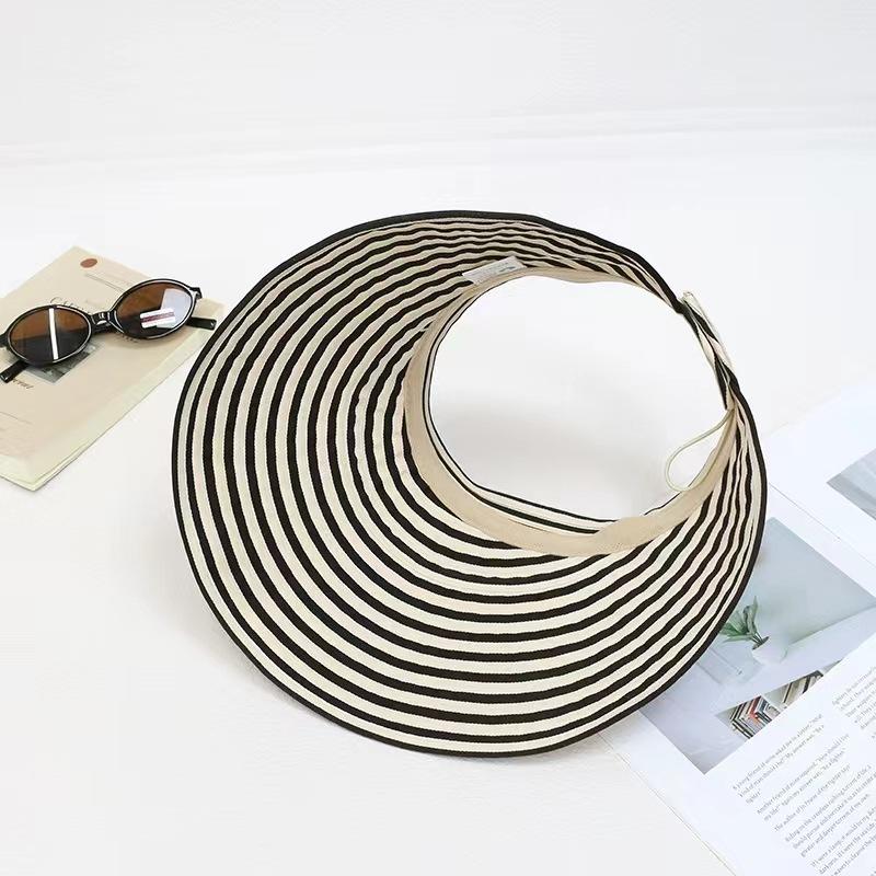 Black Rice Dome-AG1 Striped Large Brim Sun Hat