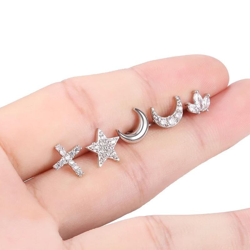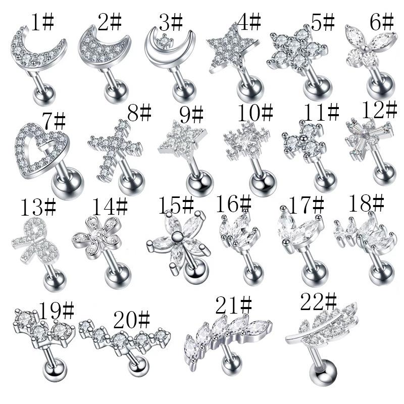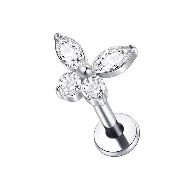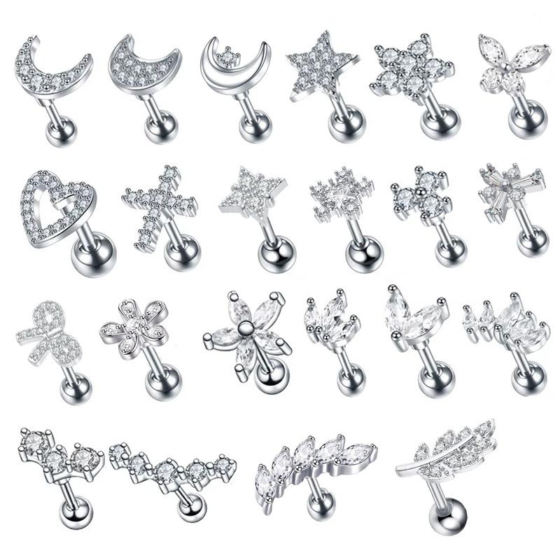 Aretes Micro-Incrustados de Acero Inoxidable Diseño Nicho Aretes de Circonita de Mariposa Aretes con Forma de Corazón para Perforación de Uña de Hueso de Oreja