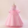 Vestido de princesa de malla hinchada para niñas, con apliques de manga larga, estilo europeo y americano, ideal para presentaciones de cumpleaños y presentaciones de anfitrionas.