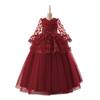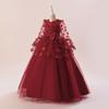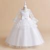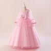 Vestido de malla de nuevo estilo de comercio exterior para niñas, vestido de novia de manga larga hecho a mano con cuentas, vestido de princesa, vestido de niña