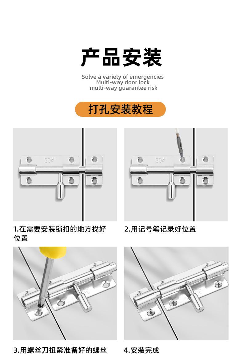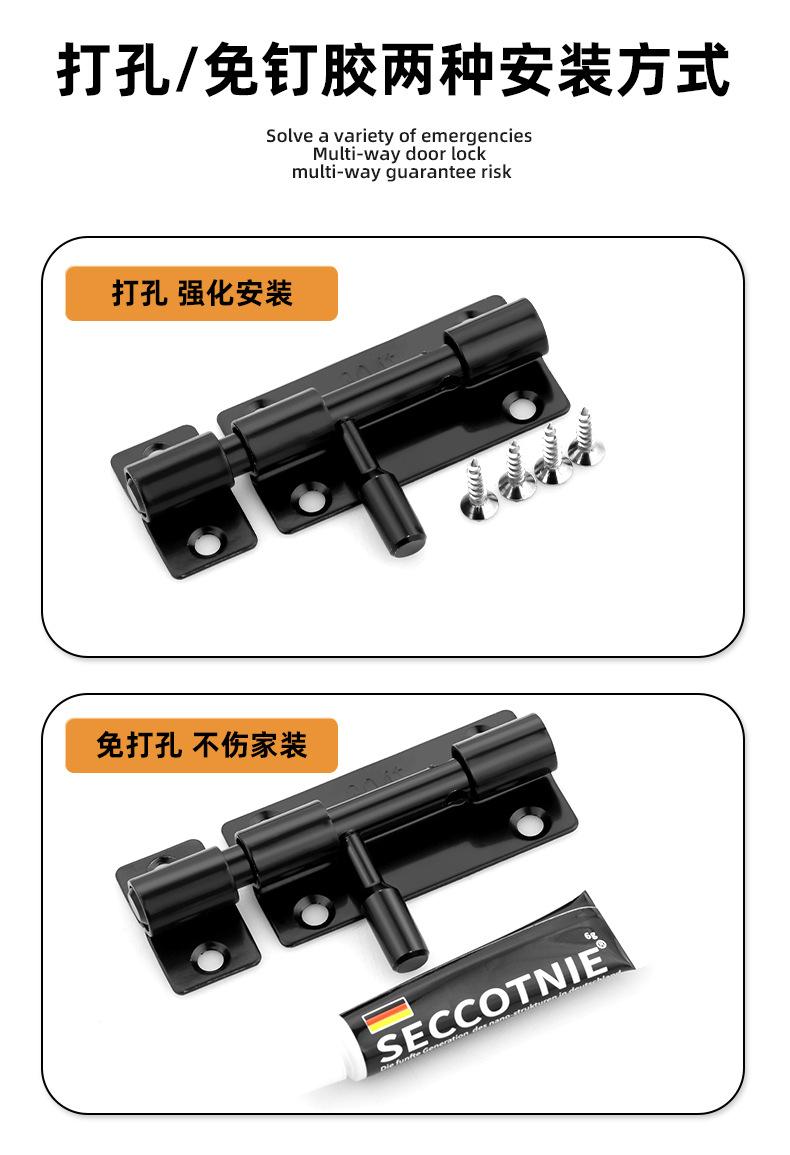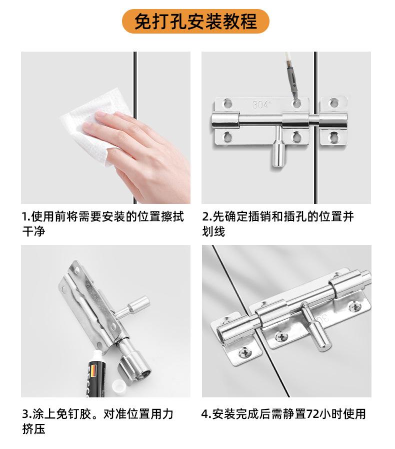 Pestillo de puerta de acero inoxidable 304 personalizado, antirrobo, para puerta de madera, para baño, cerradura antigua sin perforaciones, izquierda y derecha.