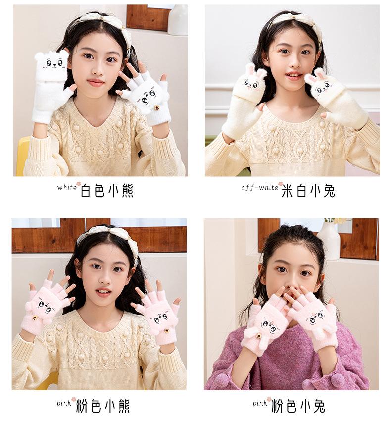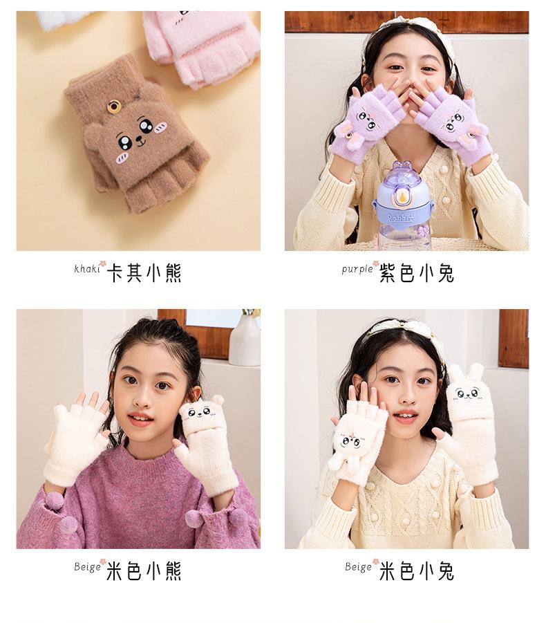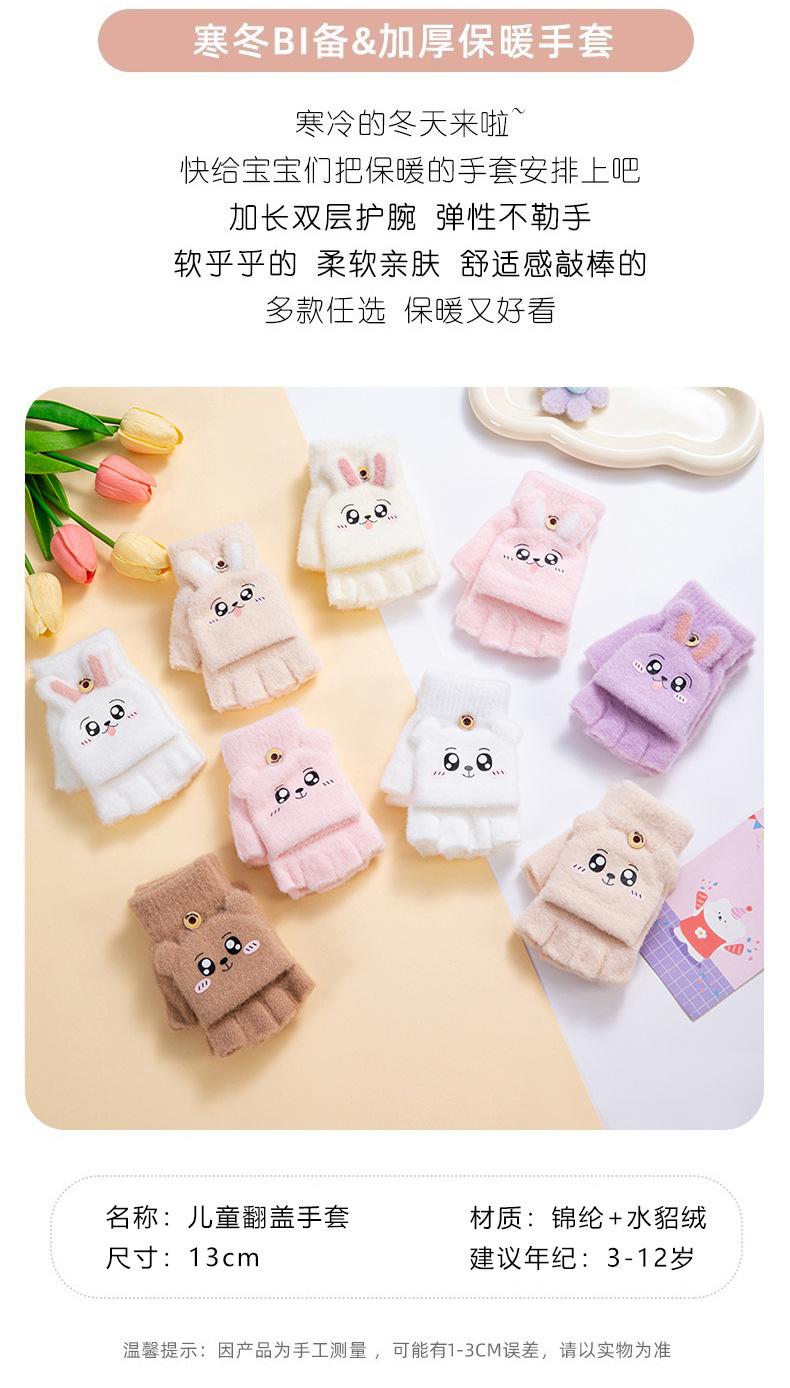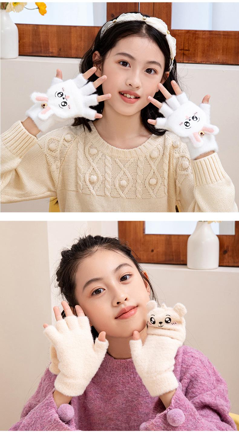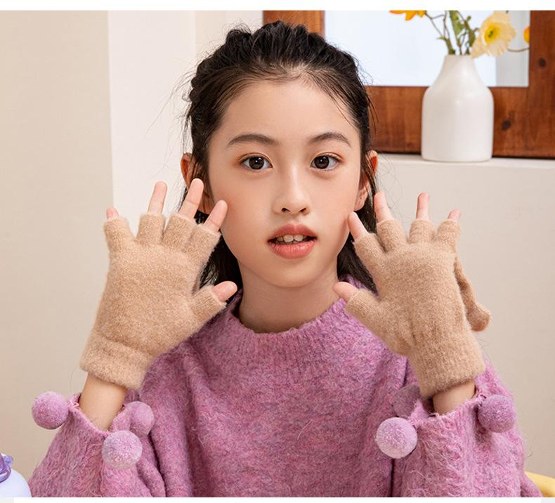 Guantes de Medio Dedo Gruesos de Felpa Cálidos para Otoño e Invierno para Niños, Guantes sin Dedos para Escribir Jacquard Cálidos para Estudiantes, Guantes con Solapa de Medio Dedo