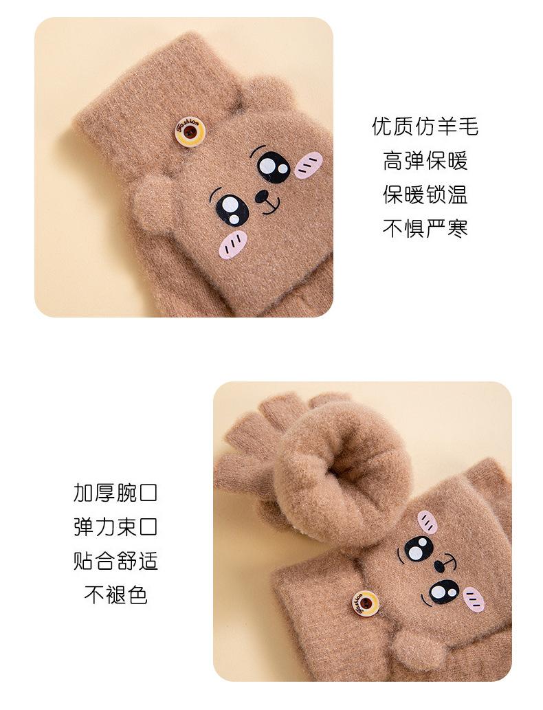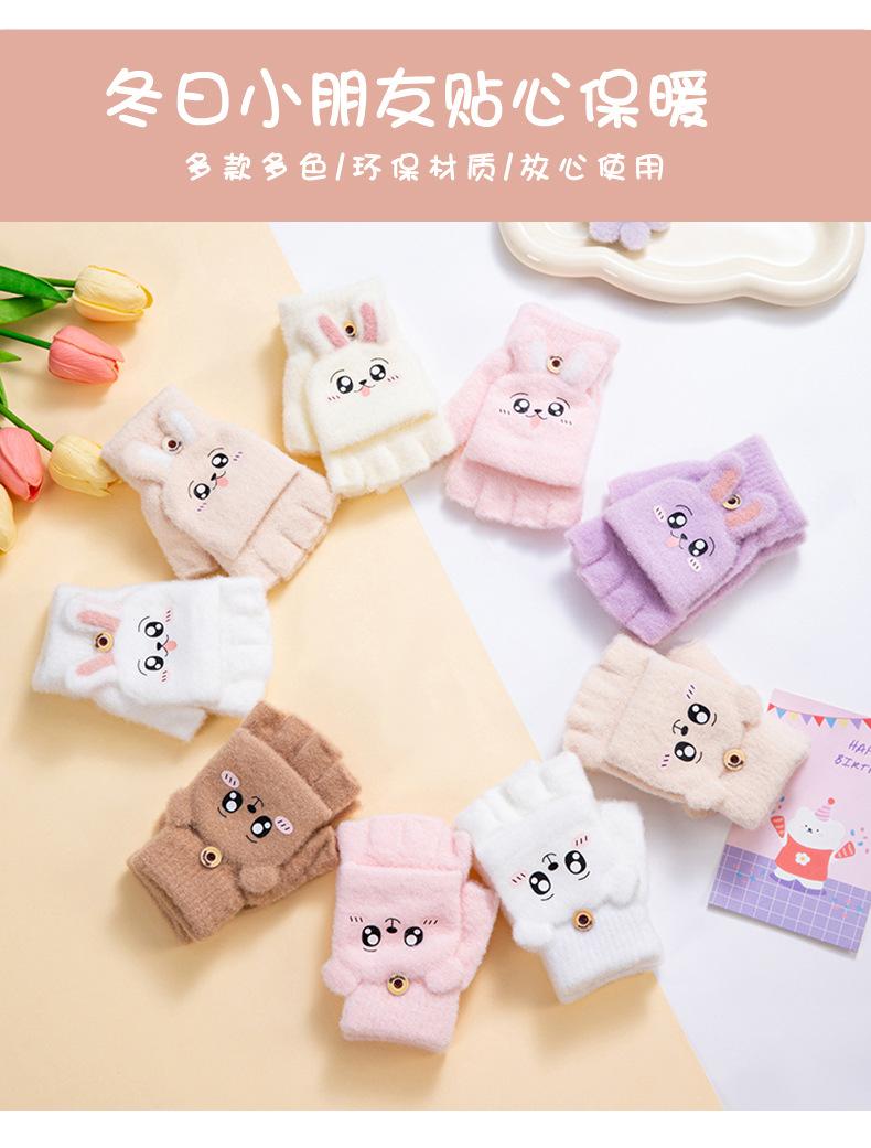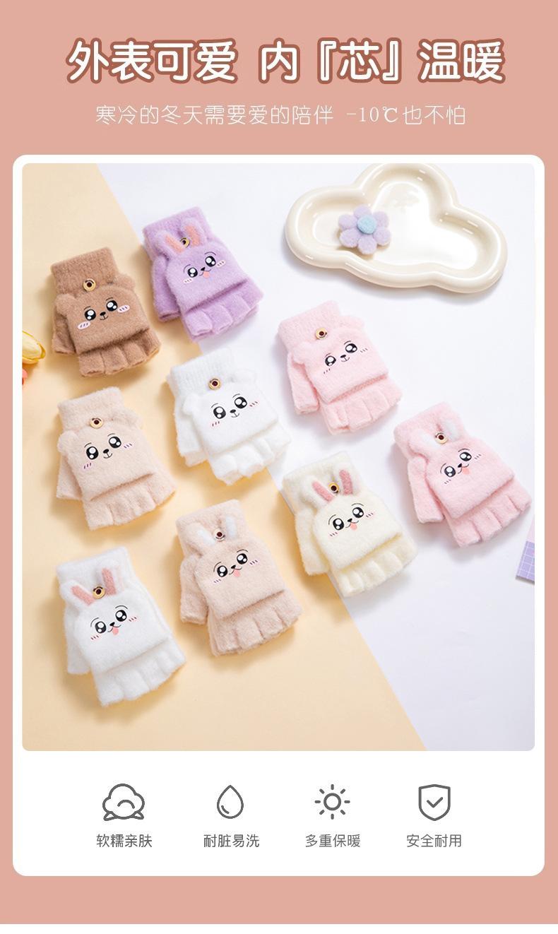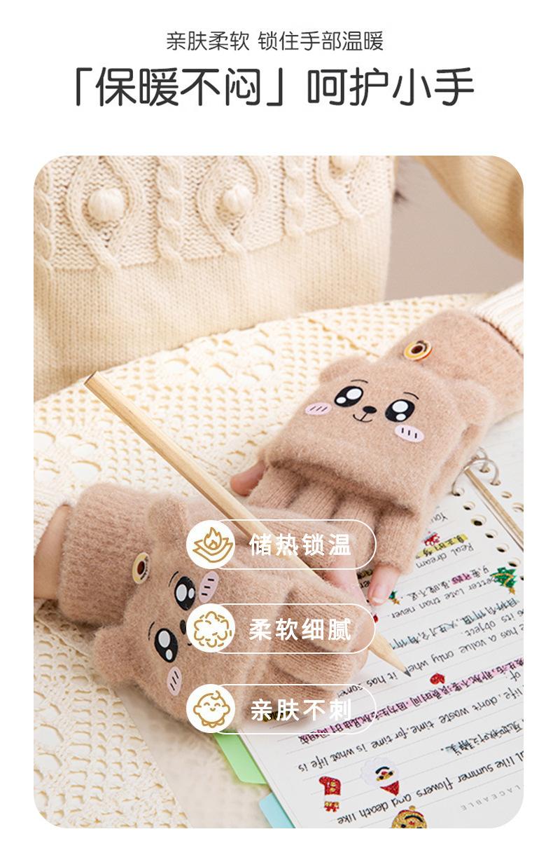 Guantes de Medio Dedo Gruesos de Felpa Cálidos para Otoño e Invierno para Niños, Guantes sin Dedos para Escribir Jacquard Cálidos para Estudiantes, Guantes con Solapa de Medio Dedo