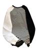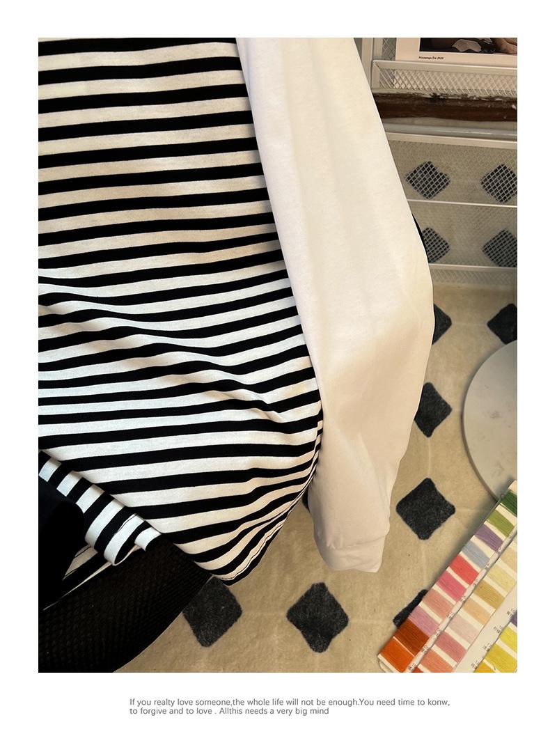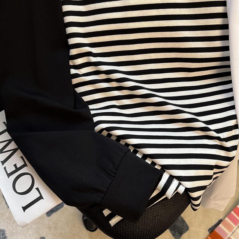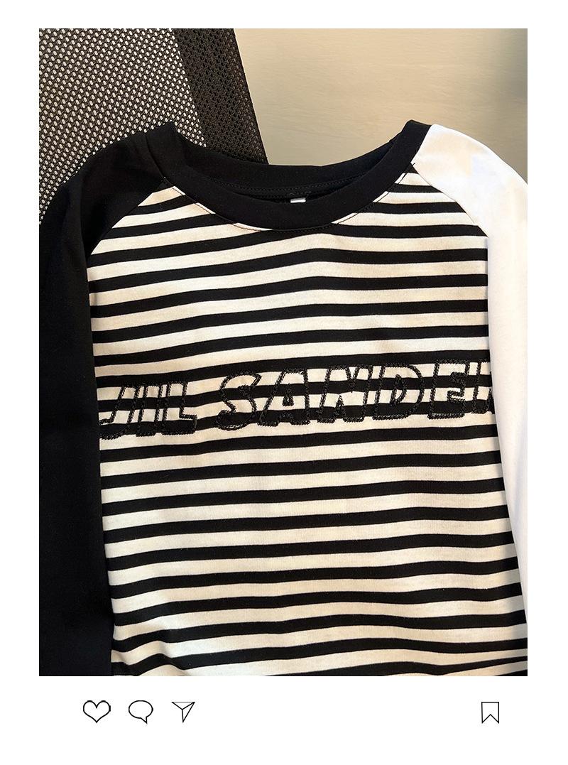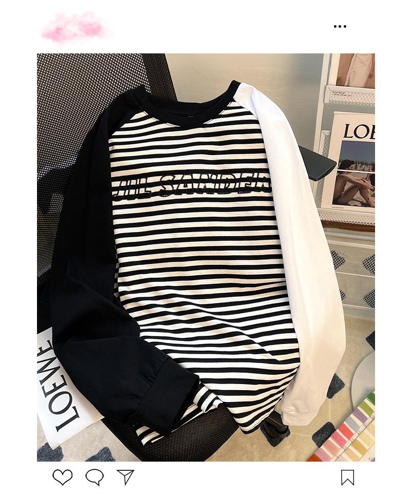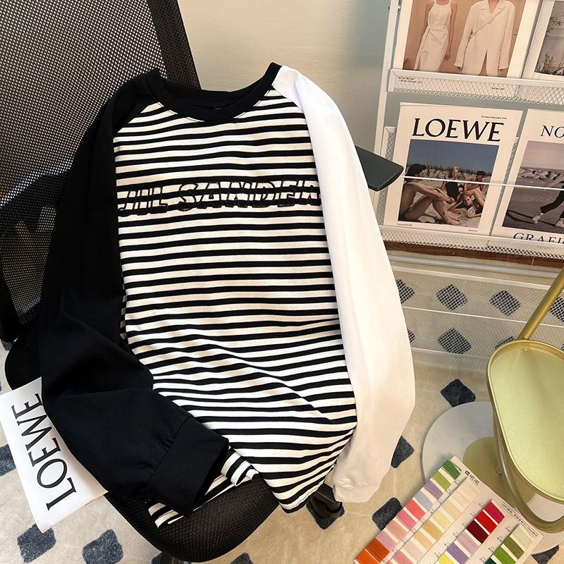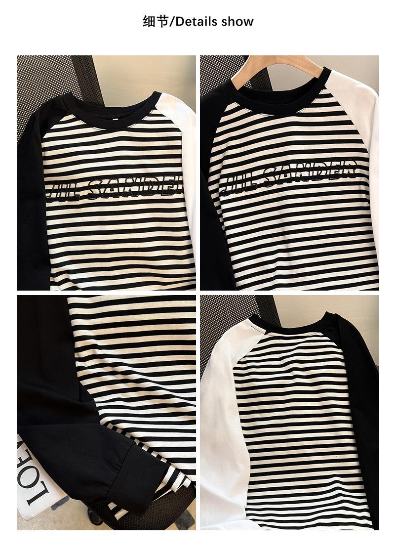 Camisa básica de rayas de algodón puro para mujer, primavera y otoño 2024, fina, ajustada, con mangas raglán, cuello redondo, manga larga, top de color en contraste, ropa para mujer