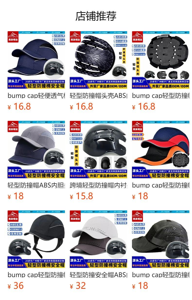 Gorra antichoque con luz forro de gorra antichoque carcasa para la cabeza certificación CE carcasa de algodón para casco gorra protectora ligera forro de ABS