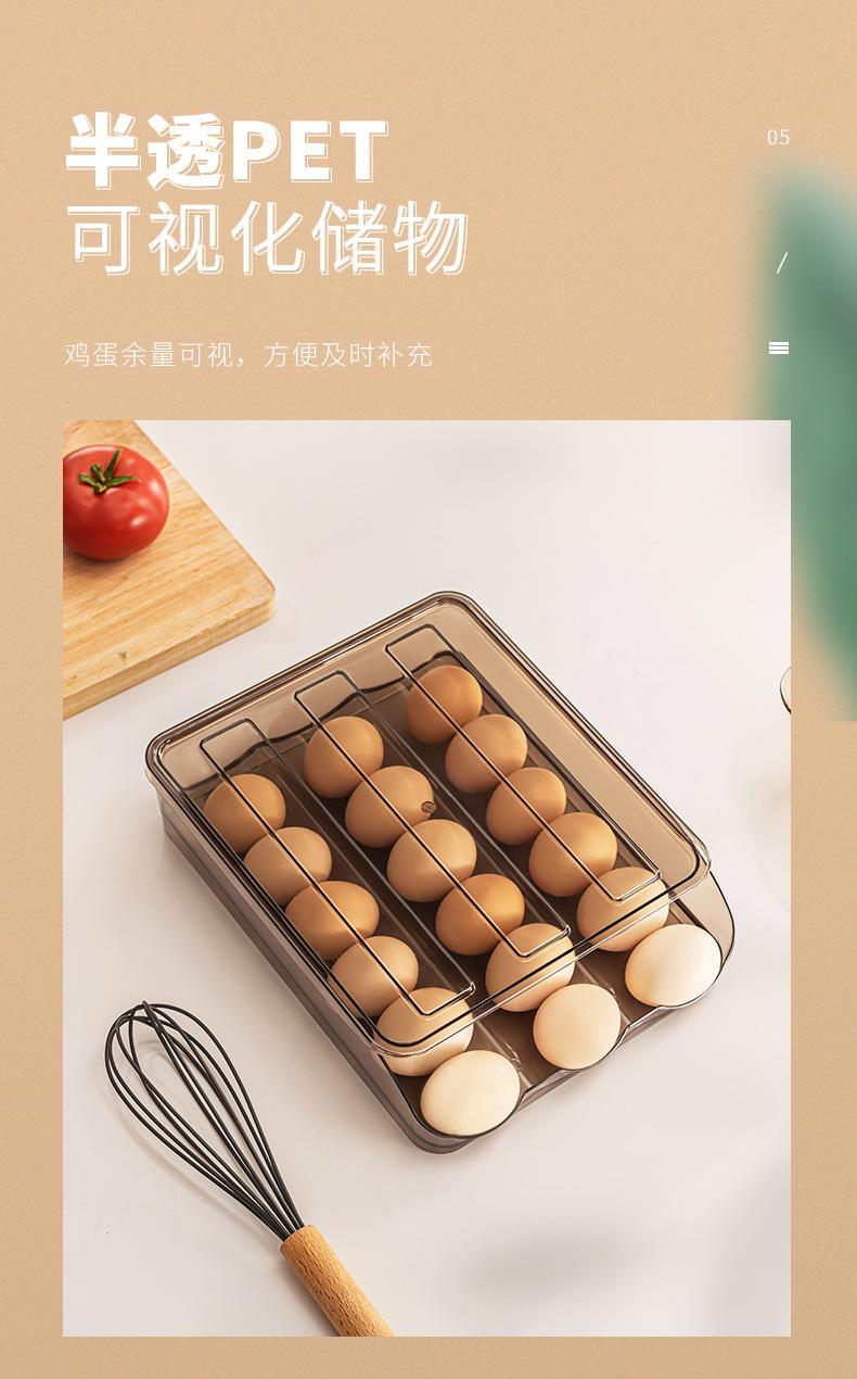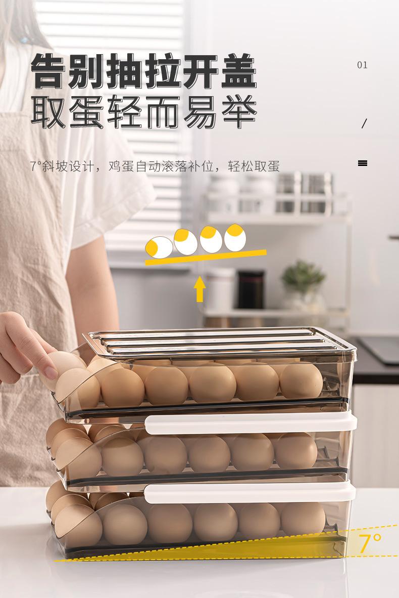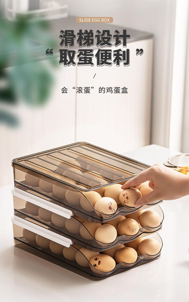 Caja de Almacenamiento Tipo Cajón para Cocina Soporte para Huevos Estante Refrigerador Doméstico Conservación de Alimentos Rodamiento Automático de Huevos Caja de Huevos Multicapa