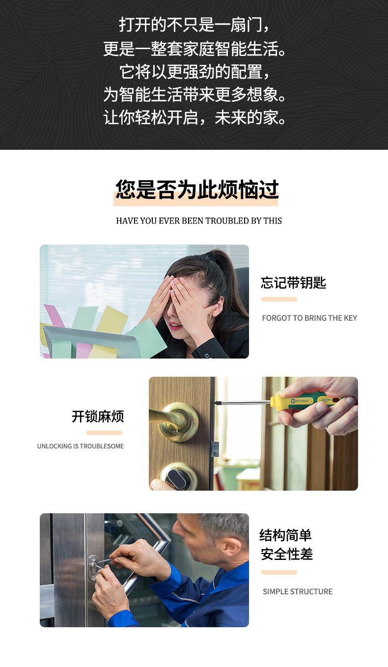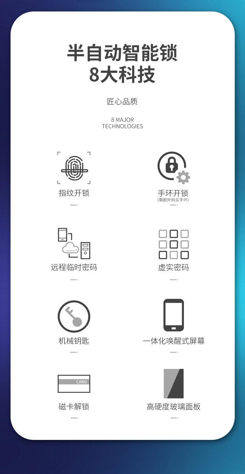 Fingerprint, Waterproof, Password, With key, Palm Print, Visual Cat's Eye, Face recognition, Remote unlock